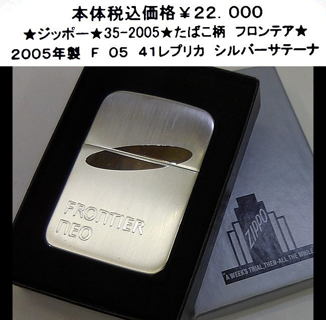現物を写真撮影、この写真の品が届きます。たばこ柄 フロンテア 41レプリカ シルバーサテーナベース3面柄です。裏面無地 2005年製 F 05 です。日本タバコ懸賞品のため入手困難品!!新品未使用無傷のベスト品。既に廃版になっており今後の入手困難品です。ビンゴが出品している全ての商品は、店頭販売、他オークション販売、ショッピング販売等重複し販売しております。時間差で売れ切れや、出荷点検検等で傷が付いていたり破損している事もあります。従いまして、お買い上げ頂きましても出荷出来ない場合も有りますので、予めご了承の上お買い求め下さい。ご注文商品は他商品と同梱配送出来ますので、何個ご注文されても送料は1口分です。1.レターパック発送 ¥600 日時指定不可。(郵便レターパック)。2.宅配便発送税込み ¥880日時指定必須(沖縄/離島は別途価格)。必ず 受取日時 をご指定下さい。(例:15日 18~20 時必着)再配達防止の為。 (業者は当社にお任せ)。3.代金引換発送引手数料税込み ¥1、210 日時指定必須(沖縄/離島は別途価格)。 必ず 受取日時 をご指定下さい。(例:15日 18~20 時必着)再配達防止の為。(業者は当社にお任せ)。