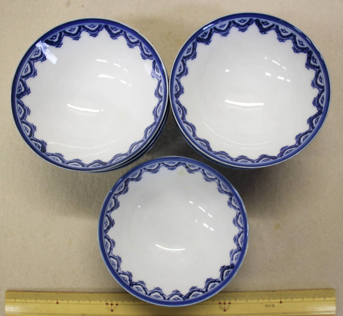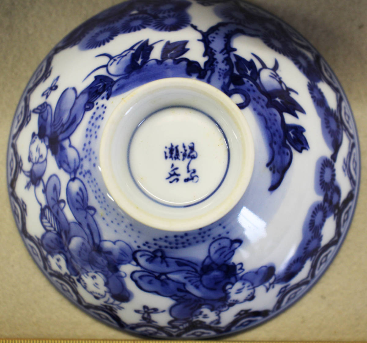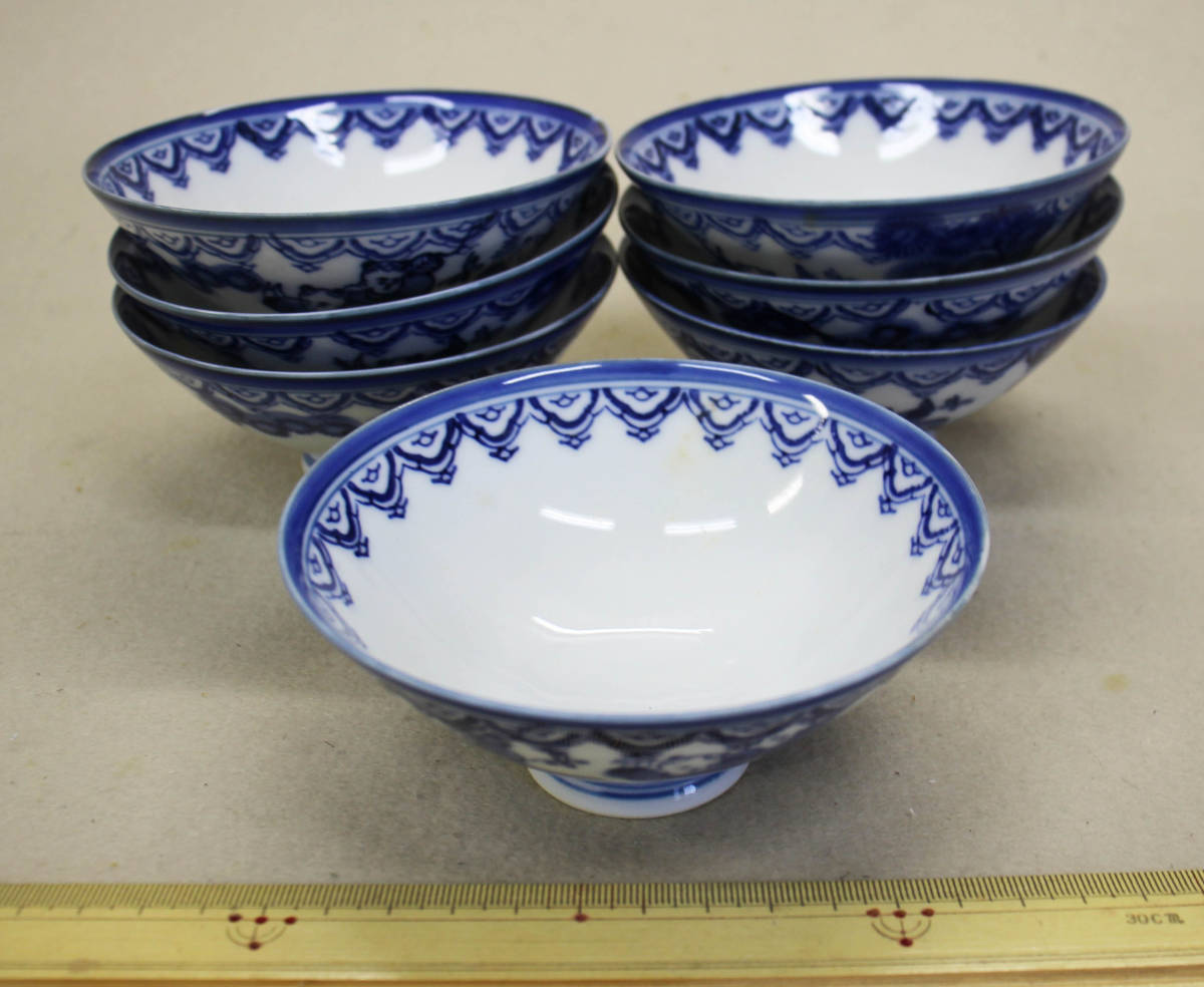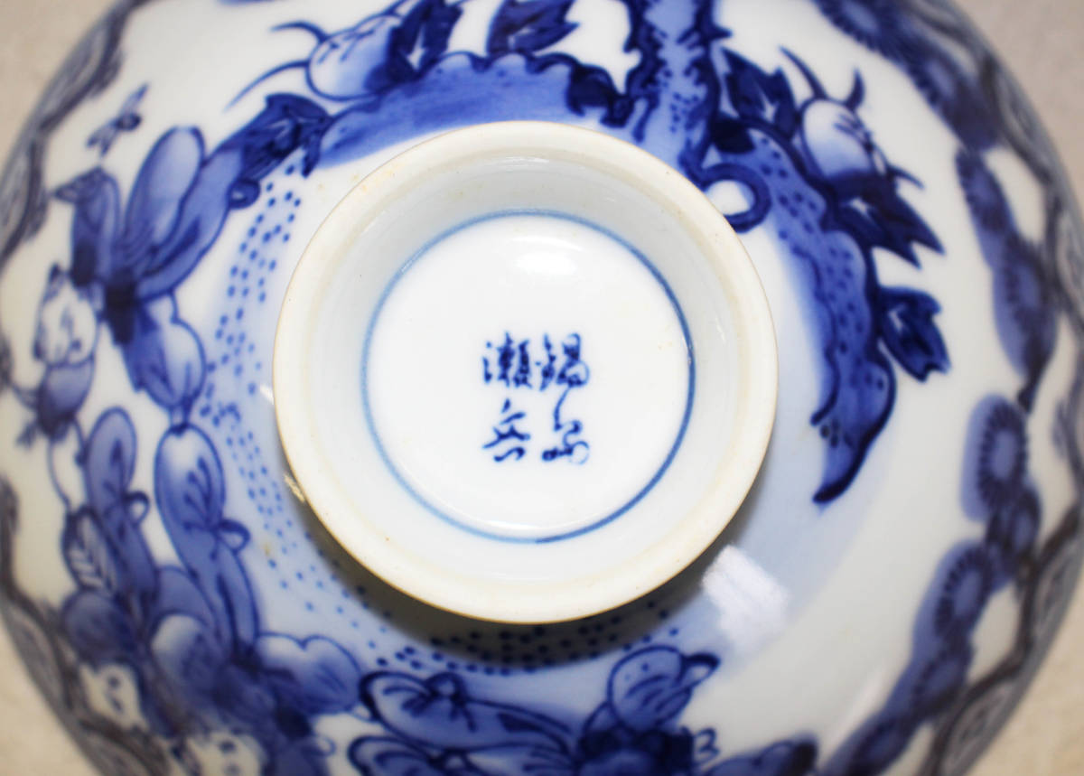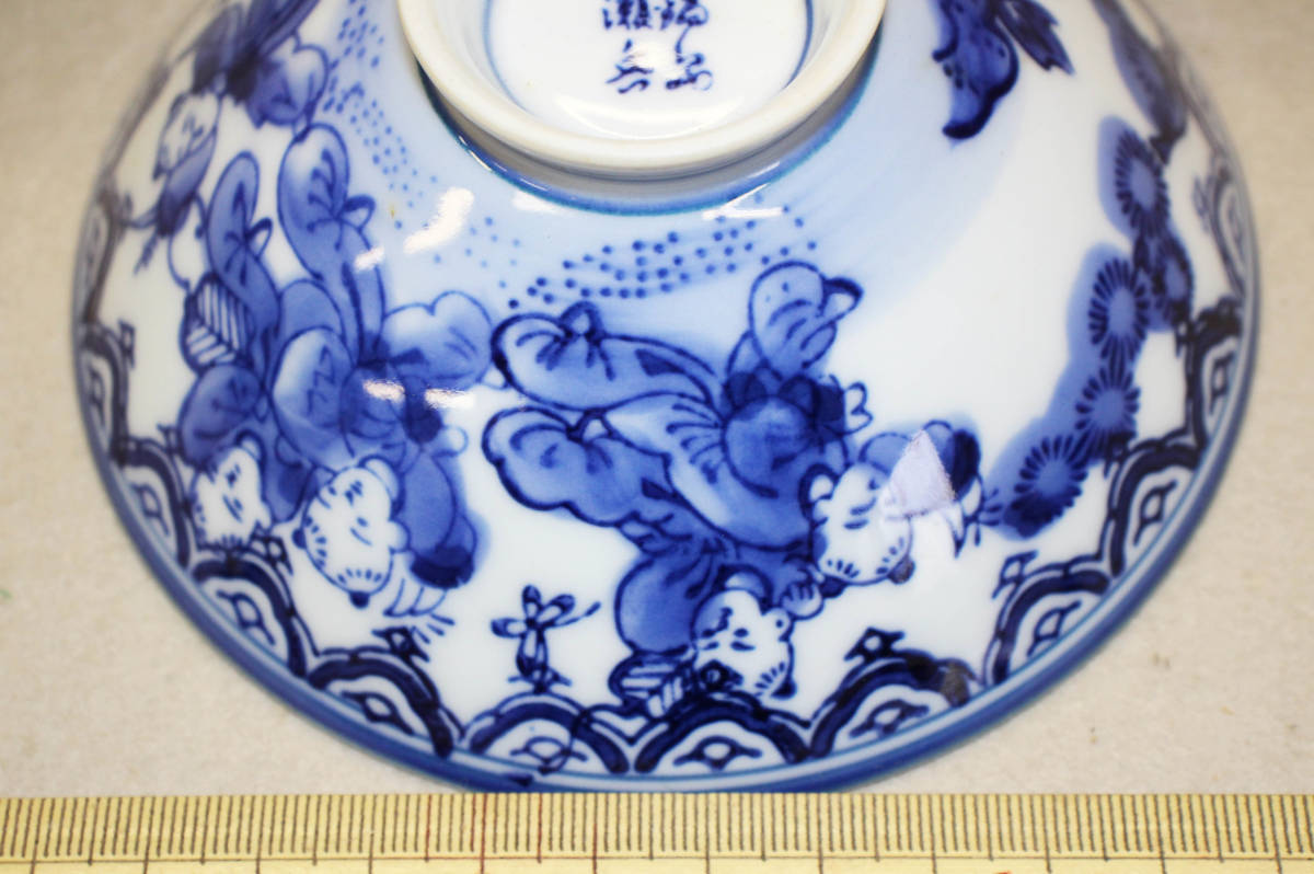 国内文物 陶磁器 鍋島染付童子圖茶碗「瀬岳」銘 7客 久