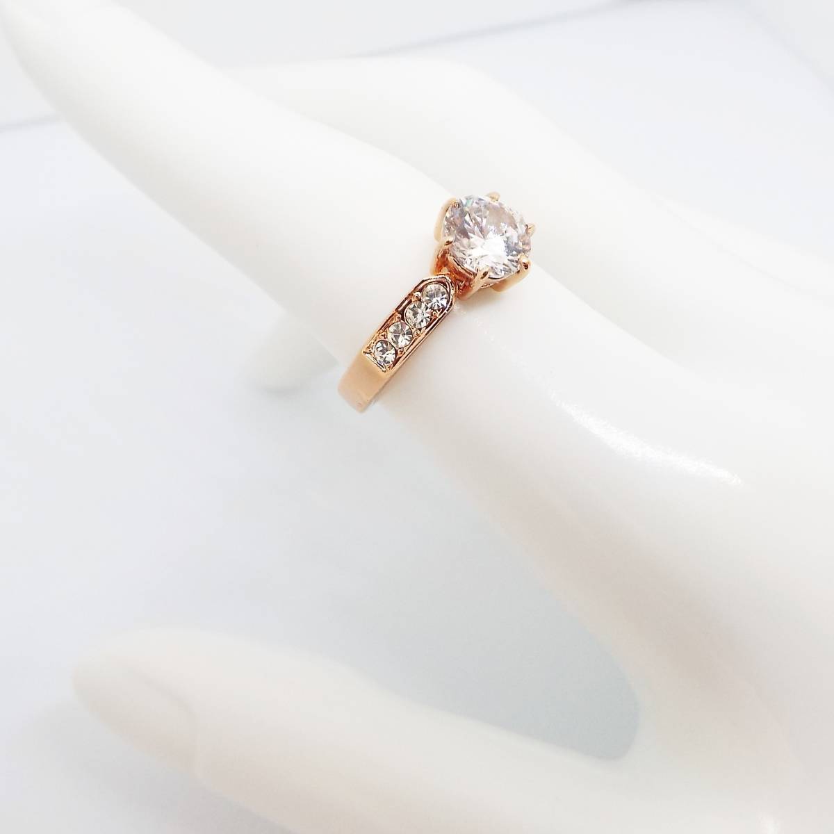 18KRGP ジルコニア 大粒ラウンドブリリアントリング 指輪 ローズゴールド