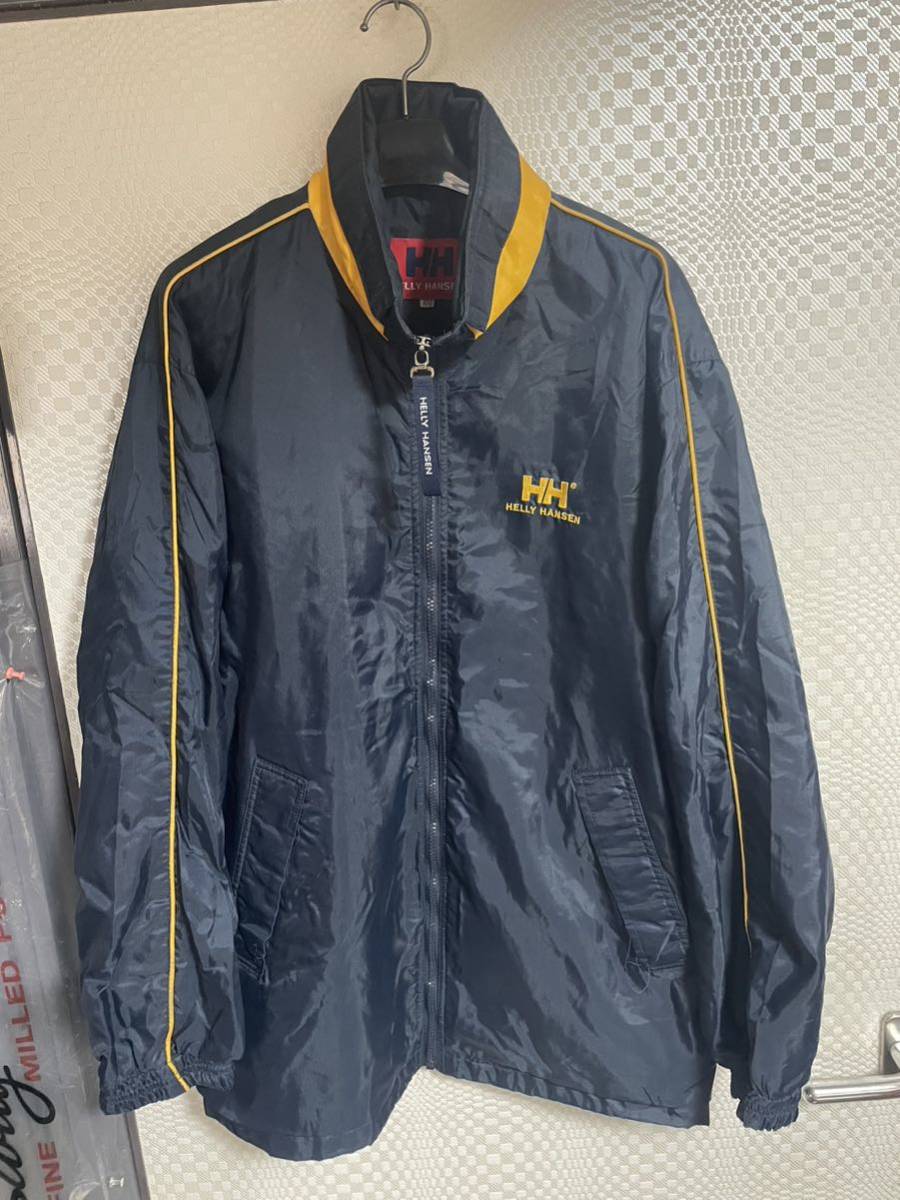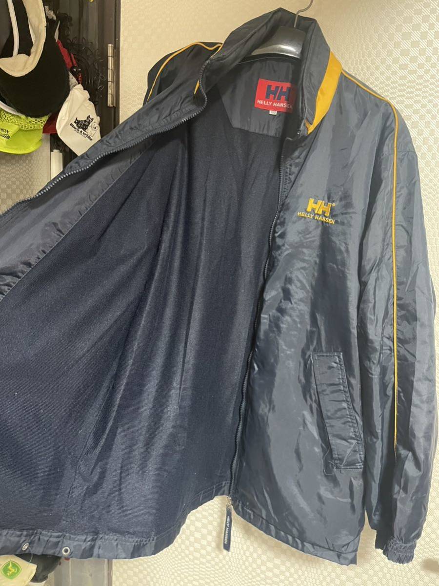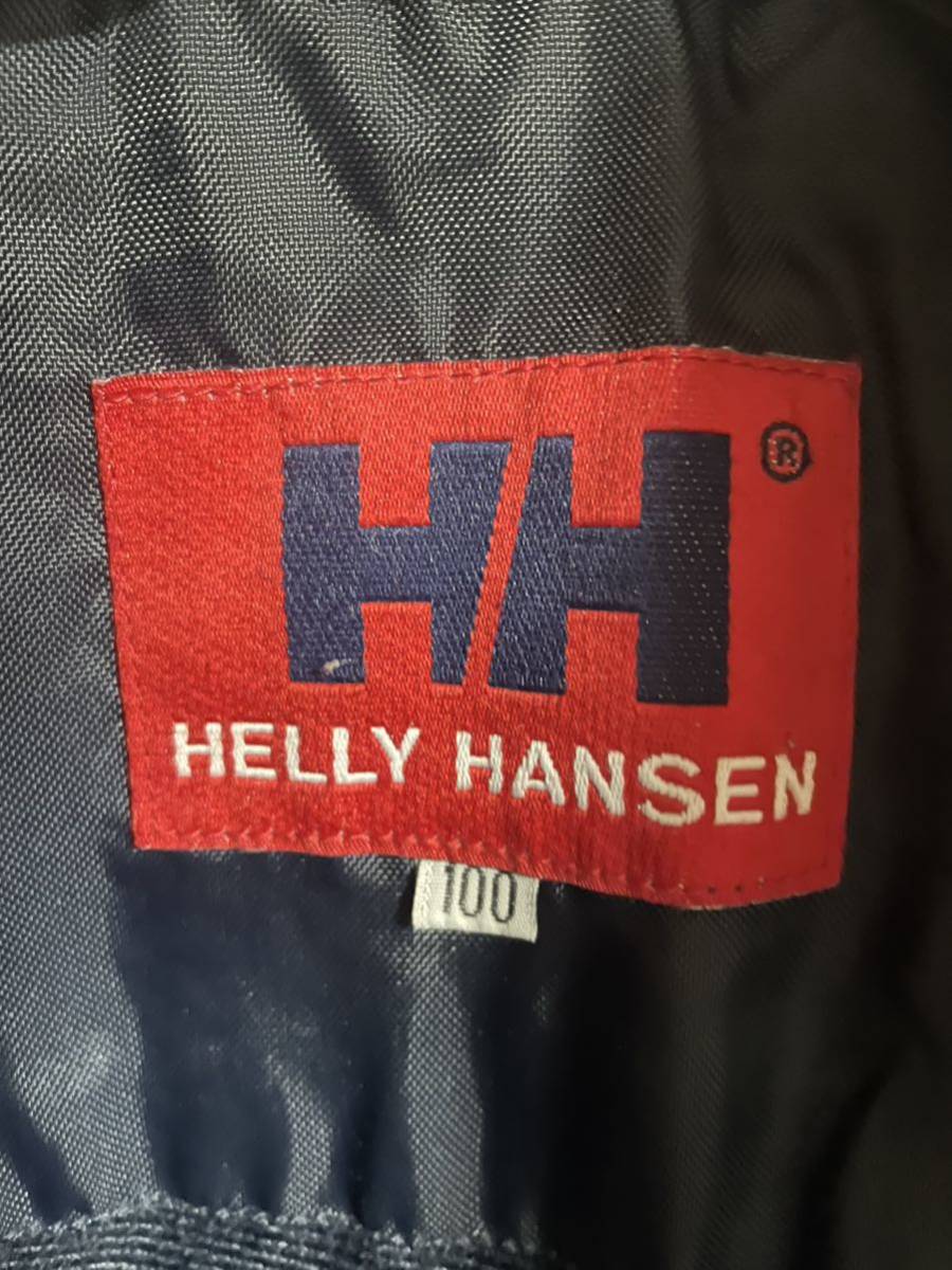 ヘリーハンセンのアウタージャケットです。襟元にフードが収納されています。サイズ100表記でXL位あります。平置き脇下身幅65着丈78肩幅55袖丈61センチ位です。裏地付きなので暖かいですよ。