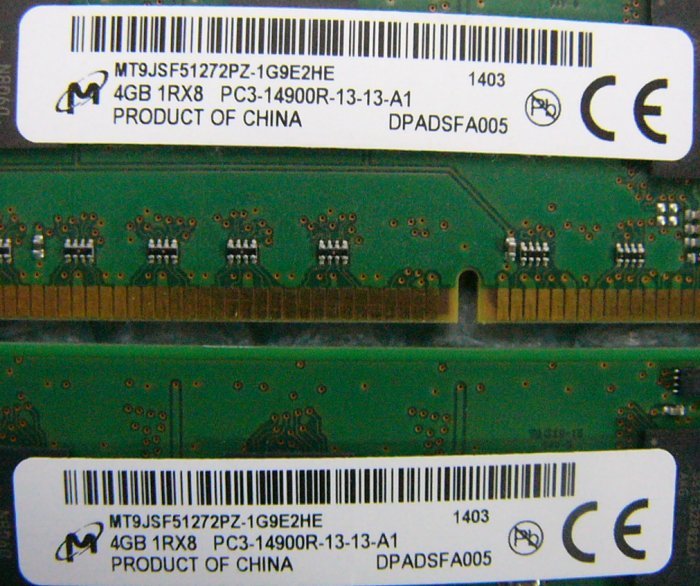 240pin DDR3 1866 PC3-14900R Registered 4GB Micron 2枚 合計8GBです