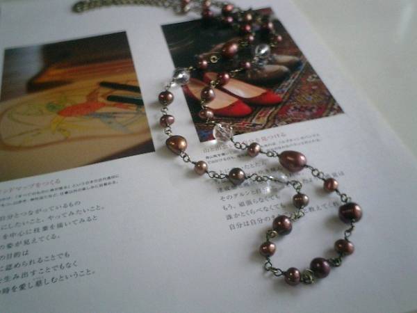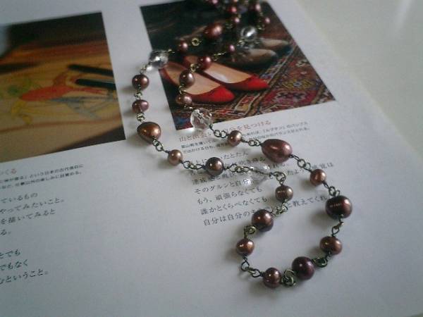 ビター・スィート・・シリーズです♪深い赤のパール・・シックな深い赤の淡水パールのネックレスです♪♪ポテトやバロックなどデザイン違いの淡水パールに水晶を合わせて大人のロマンチックしています♪6ミリから13ミリ位までのポテトやバロックの淡水パールには8ミリ、10ミリの水晶のランダムカットを合わせました♪長さは全長96センチ位で調節自由です♪2連にされても素敵です♪お揃いのネックレスやブレスレットやイヤリングも出品しています♪シンプルで飽きのこないいつまでも着けられるデザインを考えて作りました!ハンドメイドをご理解頂いてノークレーム、ノーリターンでお願いします