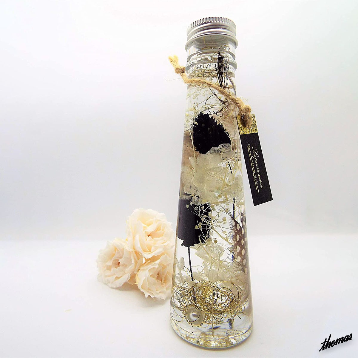 商品名:◆大人っぽく華やかな演出◆ ハーバリウム モノトーン あじさい ほろほろ鳥 インテリア プリザーブドフラワー プレゼント 母の日 お祝い
