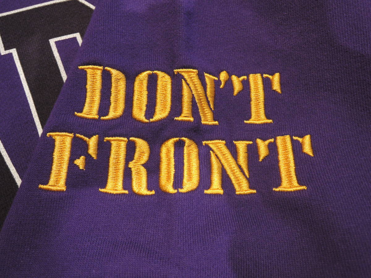 両ソデにはDON’T FRONT の刺しゅうが施され、印象的な仕上りです。