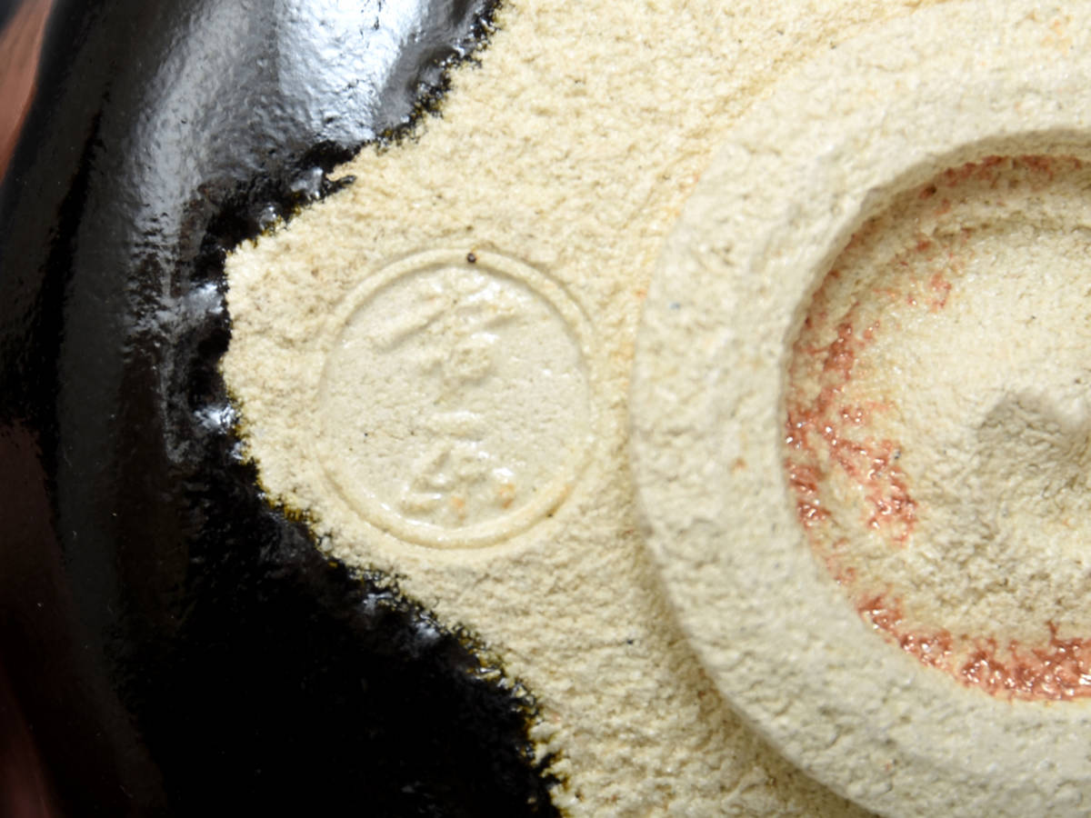 鈴木常楽の黒楽茶碗です。 さくっとした白土を椀形に整え、胴にはヘラ目が廻らされています。 高台内は渦状の兜巾にされ、器体は失透の黒釉が掛けられ口辺には薄い白釉が景色になっています。 高台脇に「常楽」の押印がございます。 未使用でキズ欠点なく良い状態です。 ※ 撮影の際に生じた写り込みなどがございます。 ご理解の程よろしくお願いいたします。 |