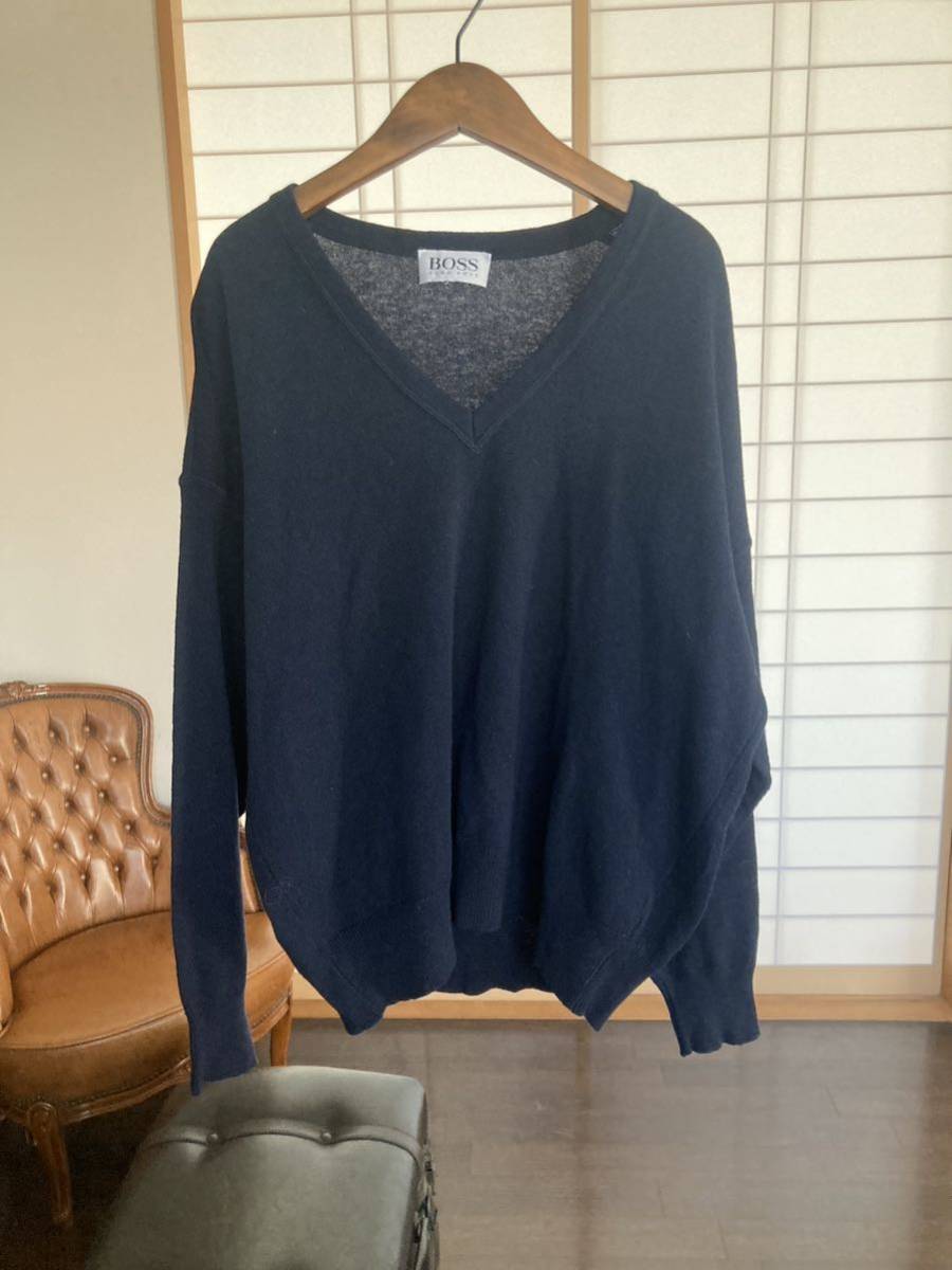 大きなダメージはございません。袖にワンポイントがあるだけのシンプルなデザインのニットです。