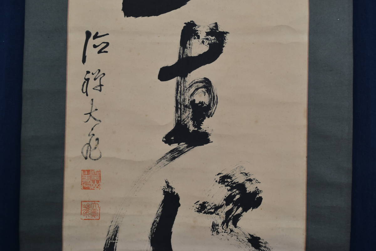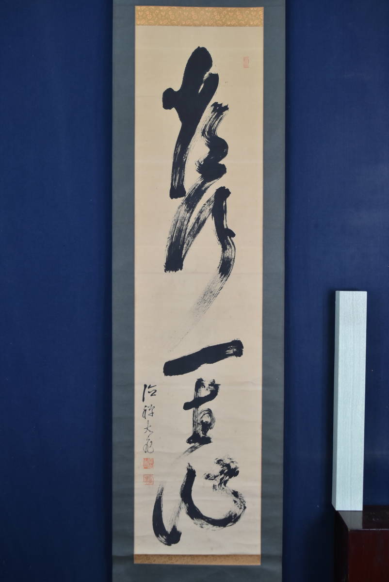 【真作】【参考】大徳寺511世/立花大亀    1899-2005 大正-平成時代の僧。明治32年12月22日生まれ。臨済(りんざい)宗。大正10年出家。京都大徳寺塔頭(たっちゅう)の徳禅寺住職となる。大徳寺派宗務総長を2期つとめ,昭和38年最高顧問,48年大徳寺内に如意庵を復興して庵主となる。57-61年花園大学長。平成17年8月25日死去。105歳。大阪出身。堺市実業補習学校卒。著作に「度胸の据え方」「利休に帰れ」など。