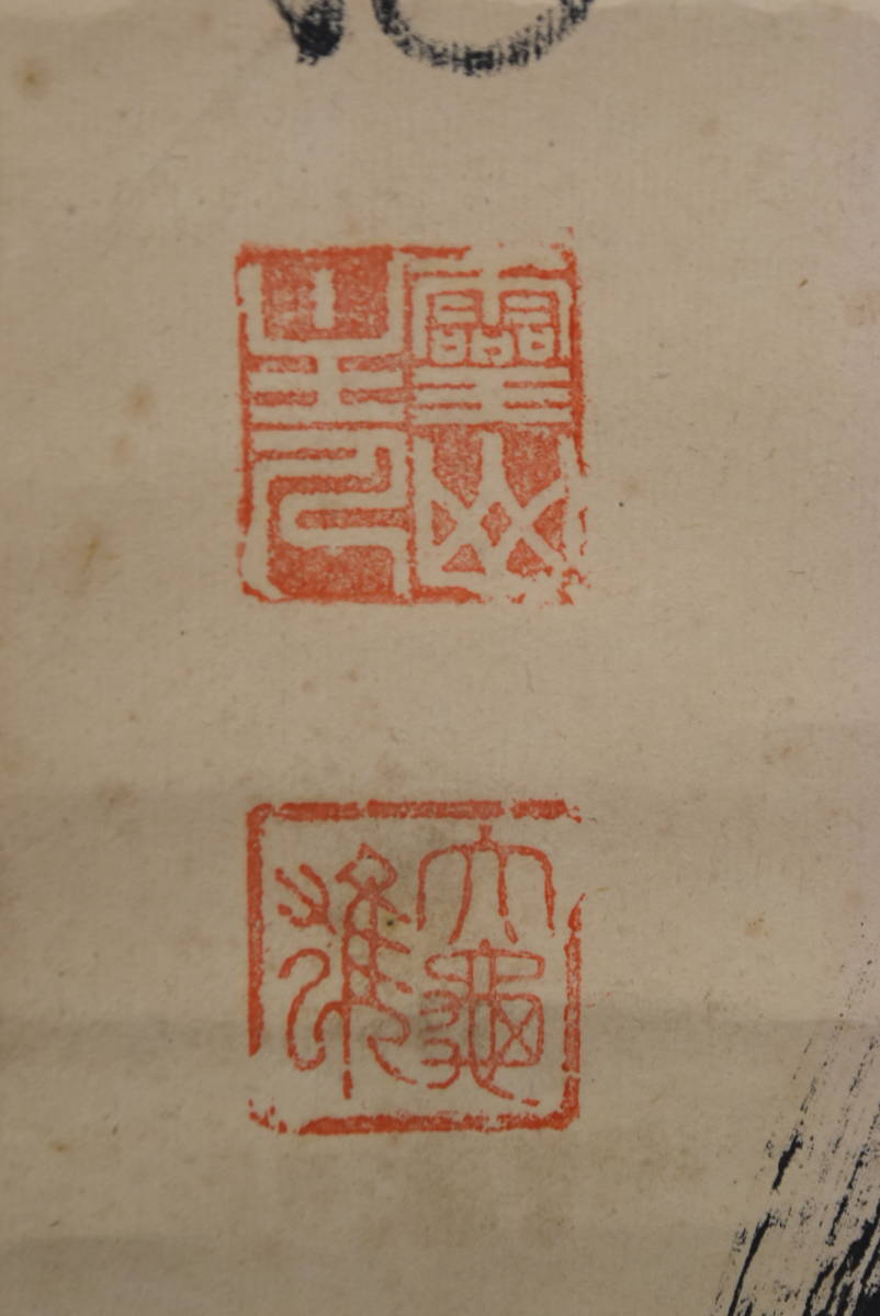 【作品状態】 本紙は紙本肉筆です。本紙は薄汚れ、多数の汚れシミ、折れ、巻シワなどあります。表装は紙表装で薄汚れ、多少の巻シワあります。
