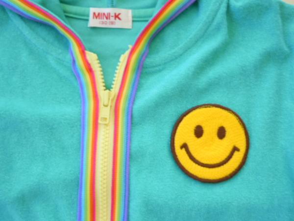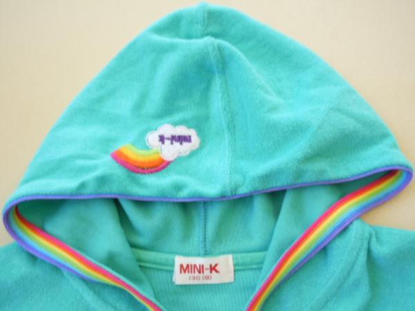 定価6900円 ミニKの夏に海やプールなどでも使えそうなタオル地のパーカーです。春・夏に最適です。綺麗なお色目のラインが目立ちます。後ろのプリントは、ラメ入りです。