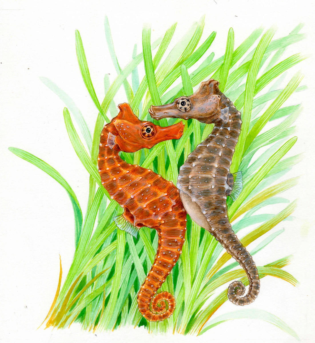 水彩画 生物細密画「タツノオトシゴ」 真作