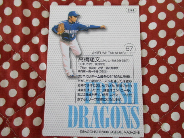 ★BBM 2008 中日ドラゴンズ★〔D74・高橋聡文〕ベースボールカード トレカ♪