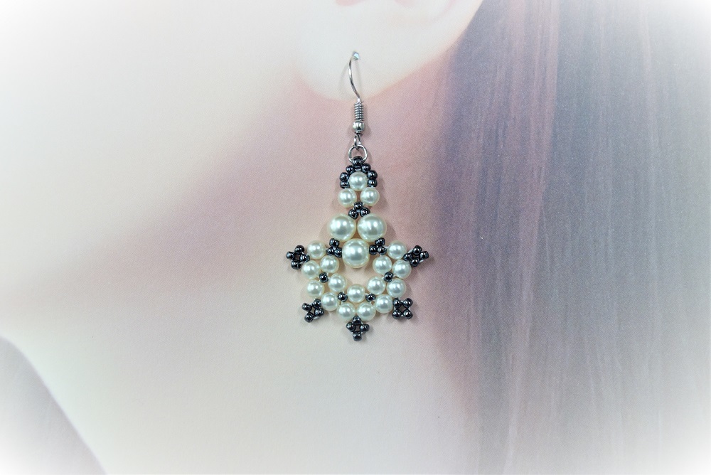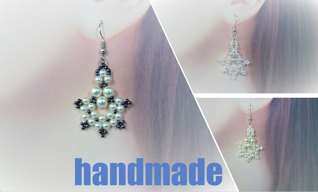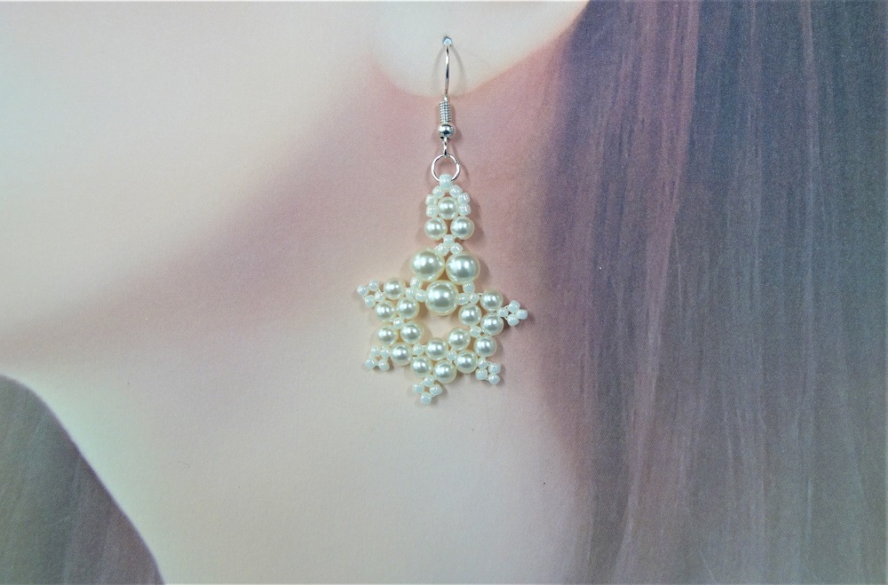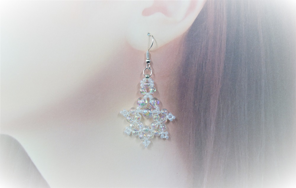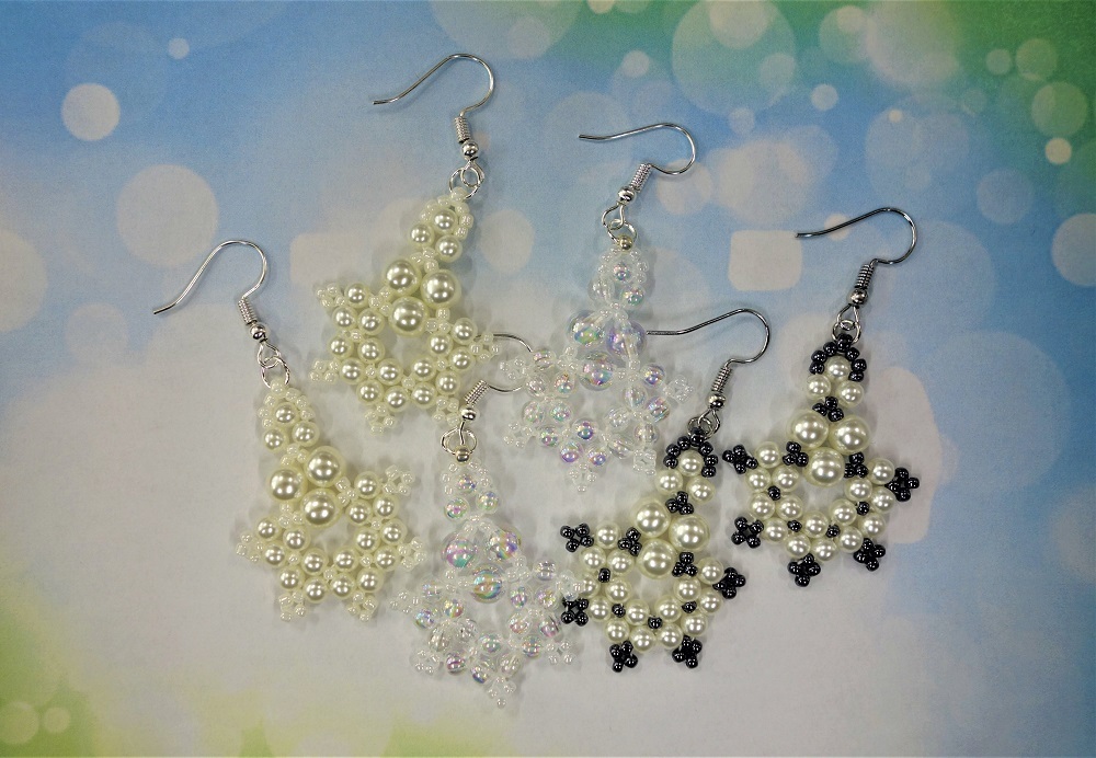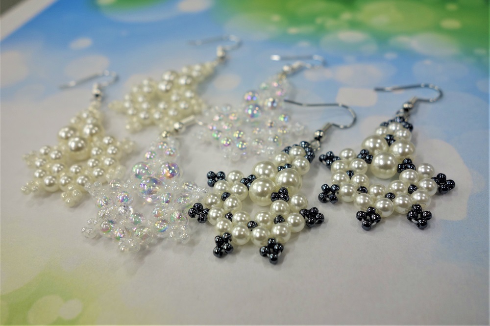 【ビーズ編み雪の華ピアス/3セット一括販売】送料無料/ハンドメイドアクセサリー