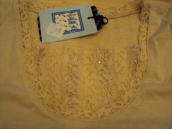 東京のお店で購入した、無地系の上品なカットソーになります。サイズの方は、Mサイズです。新品未使用品になります。お首元にあるお花柄のレース使いが上品で、とても清楚な印象が感じられる商品です。キラキラと光るシルバー系のラインストーンも散りばめられていて、華やかだと思います。夏は1着で、これからの季節は重ね着用のポイントとしていかがでしょうか。当方、ただいま、引っ越しの準備に伴う、荷物の整理を行っております。どうぞ宜しくお願い致します^^*