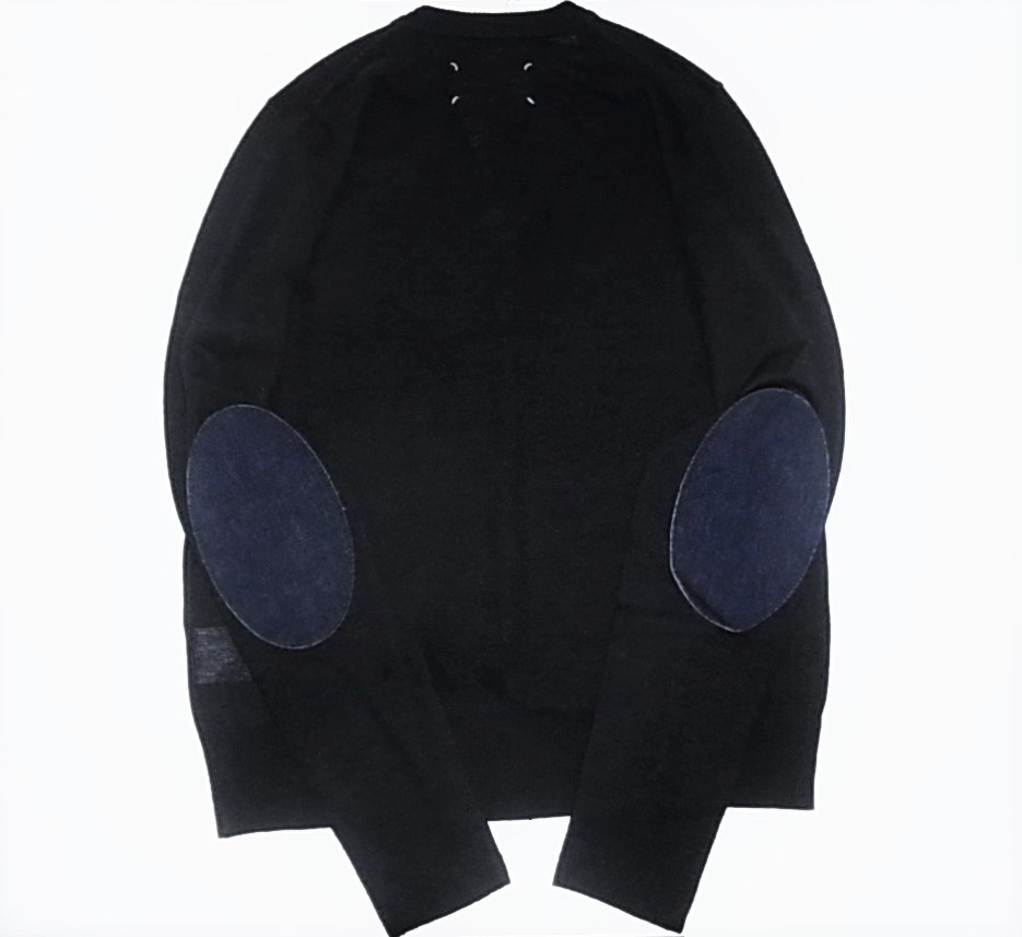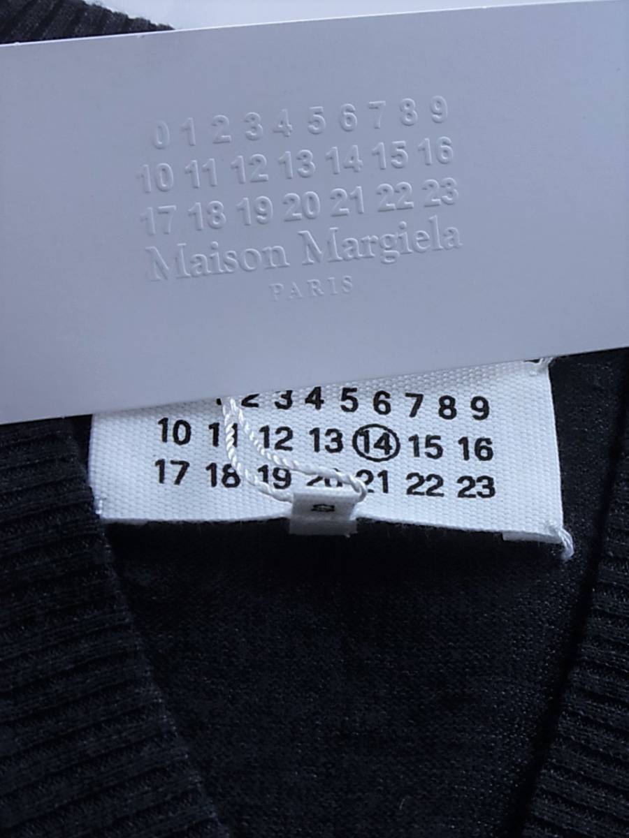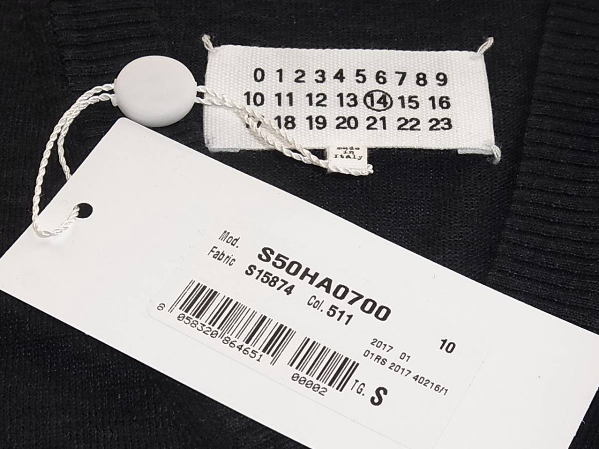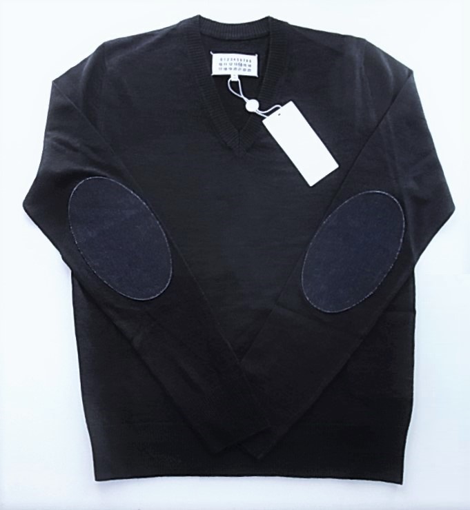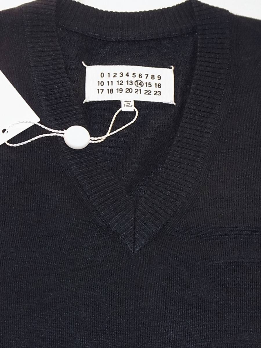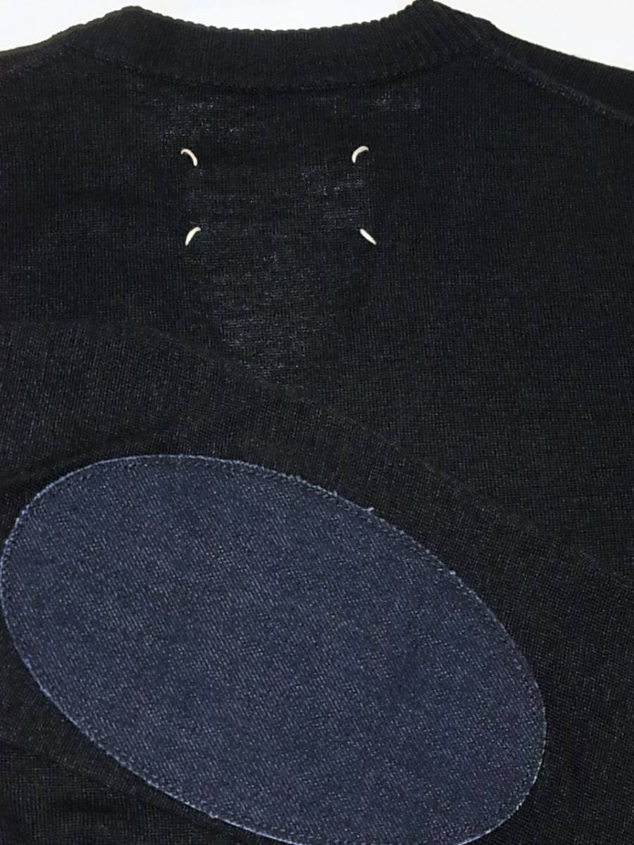 未使用 Maison Margiela リネン 麻混 薄手 タグ付き メゾンマルジェラ Vネック ニット エルボーパッチ ダークネイビー サイズS イタリア製