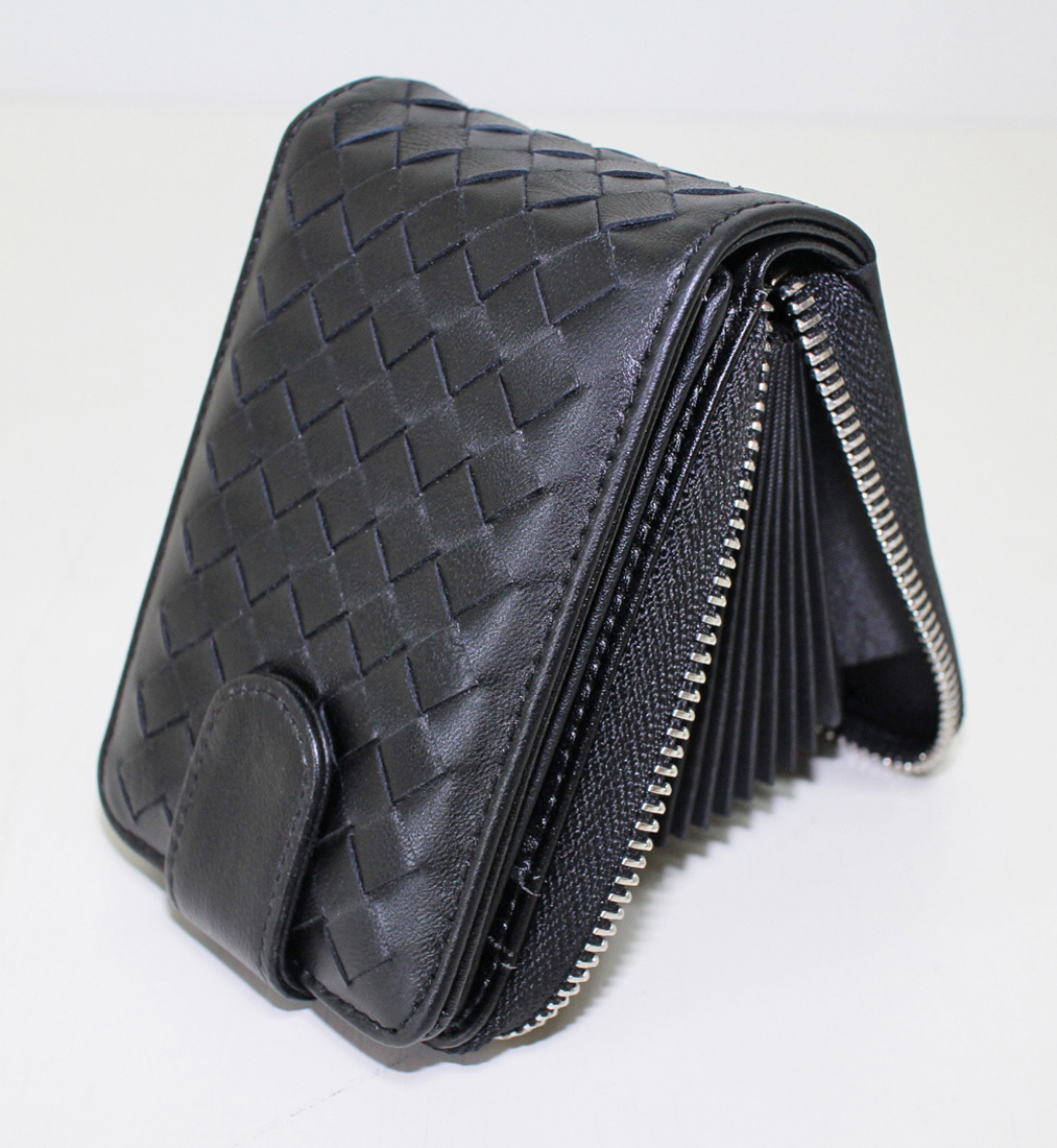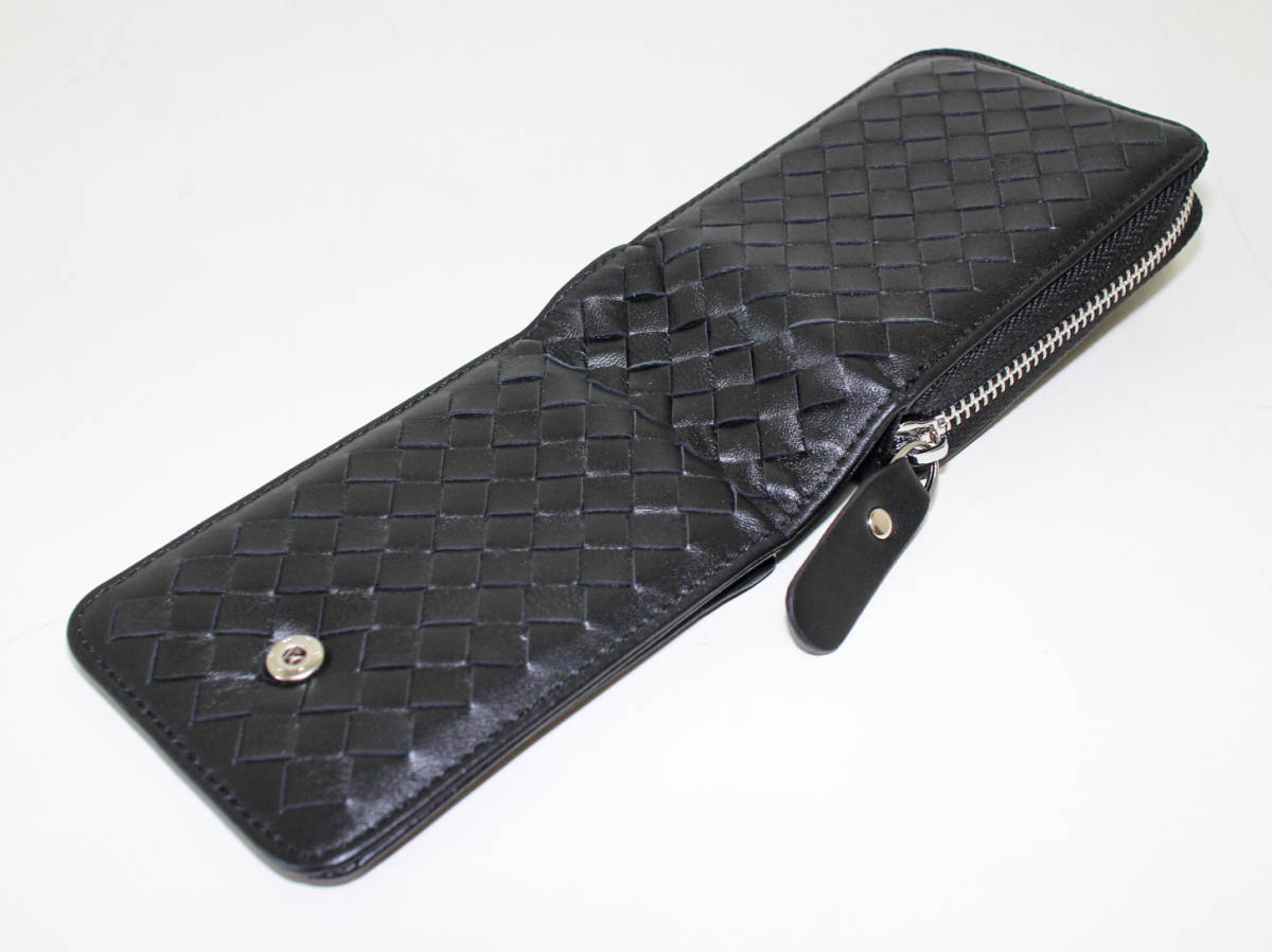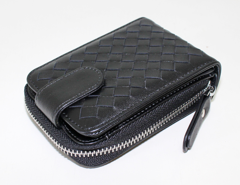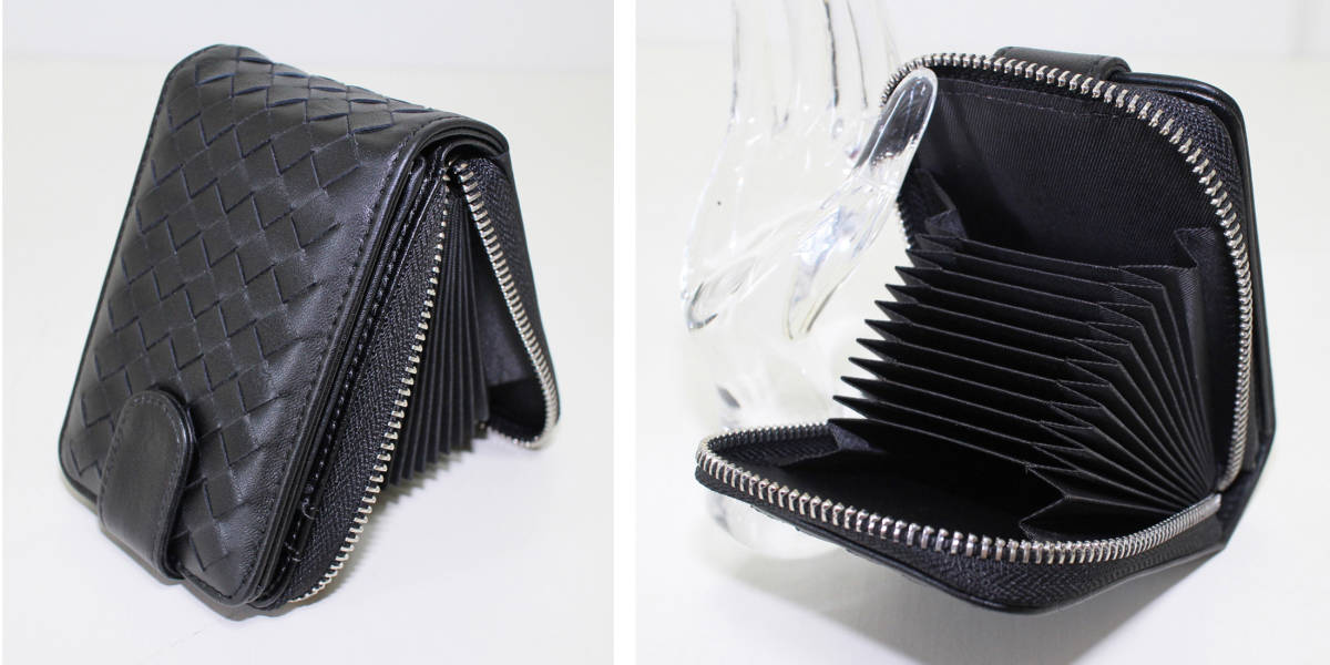 最後の1点 イントレチャート 編み込み ラムスキン 子羊皮革 ZIP ジャバラ カードケース(大きいサイズのカードも収納可)