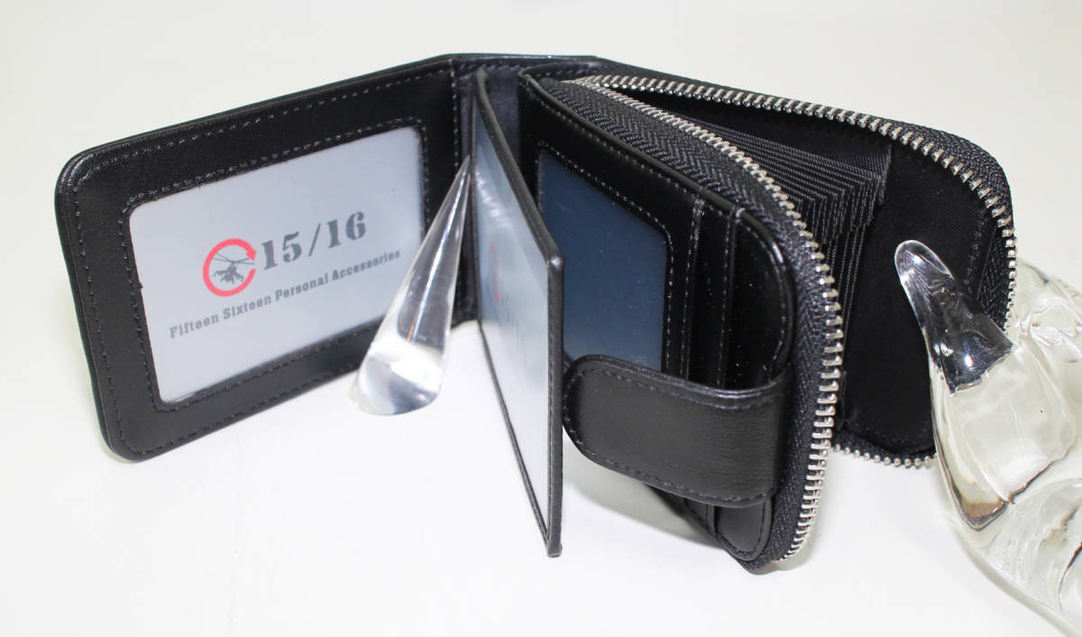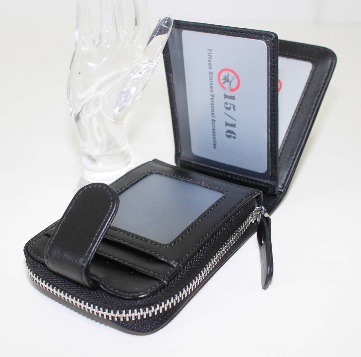 【仕様】 艶消クリア窓付カードポケット(65mmx90mmサイズ)X4:キー収納ZIPポケット