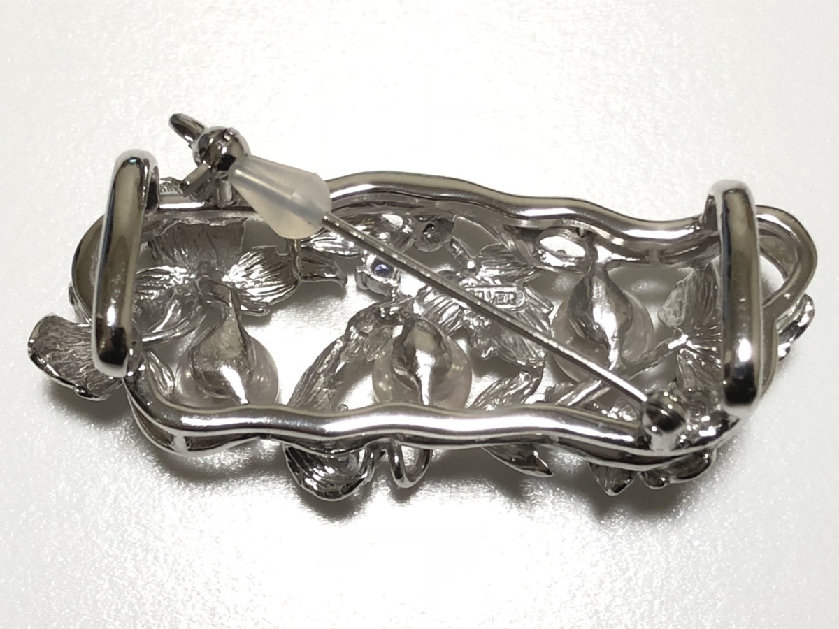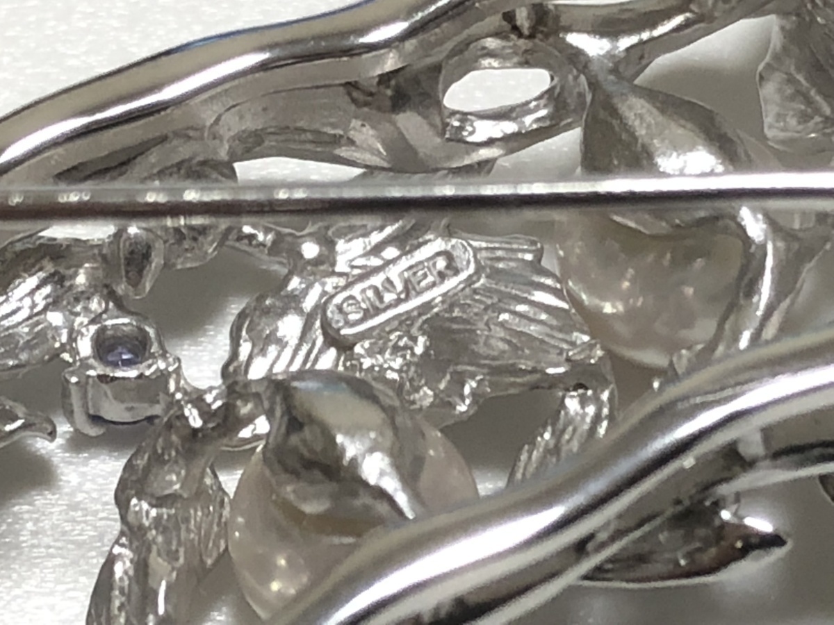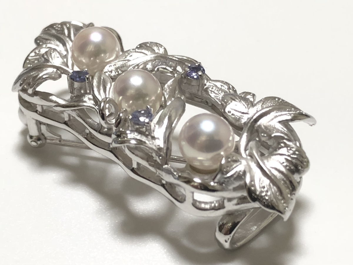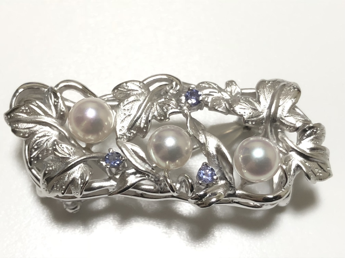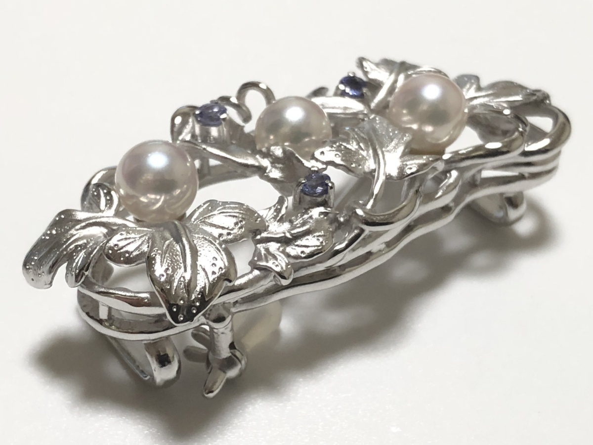 きものやまと 本真珠 タンザナイト SILVER 16.2g 2WAY 透かし蔦の葉細工 ブローチ兼帯留め 美品