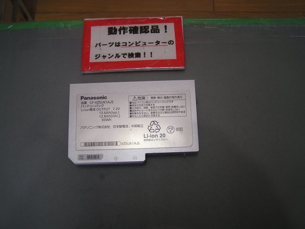 PANASONIC S10CYPDR 等用 バッテリー CF-VZSU61AJS 7.2V-13.6Ah。正常動作品(Windows-10)です。全画面常時表示状態でサンプル音楽を中音で鳴らしぱなしにして5時間48分持ちました。(メモリー等最小時)。ゆうぱっく元払いで送ります。(落札価格+60サイズ送料共を振り込んで頂き発送時に送料を支払うう方式。送料負担お願い致します)