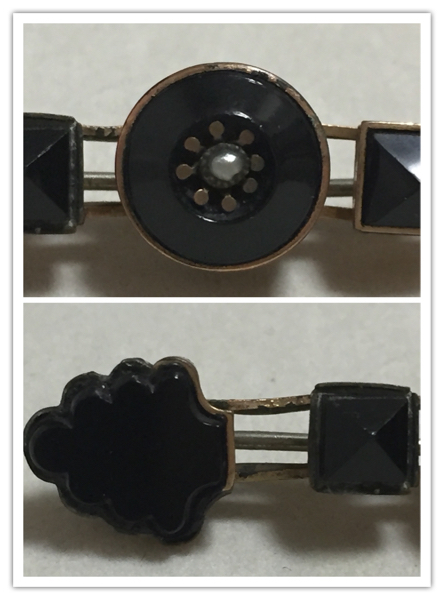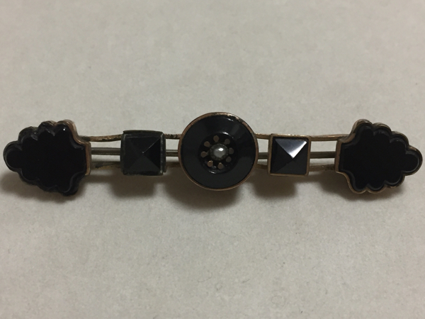 アンティーク、アール・デコのウィットビージェットを使用した、シードパールを施した、モーニングジュエリーです。経年による劣化があります。 縦1.1cm、横5.8cm、重さ5.6g