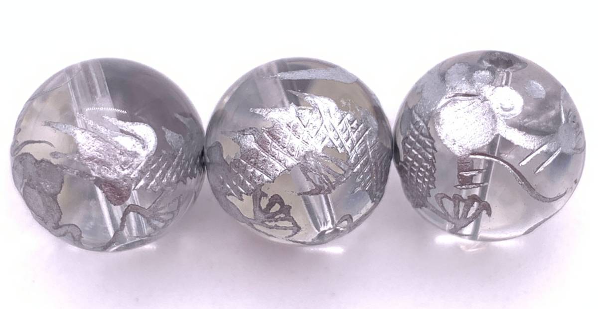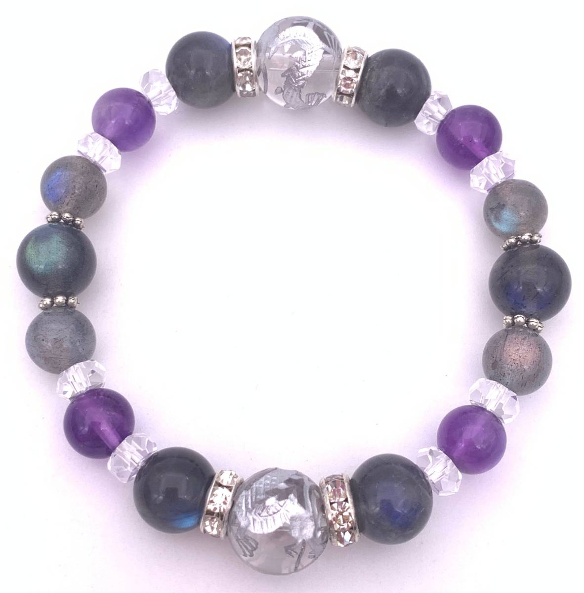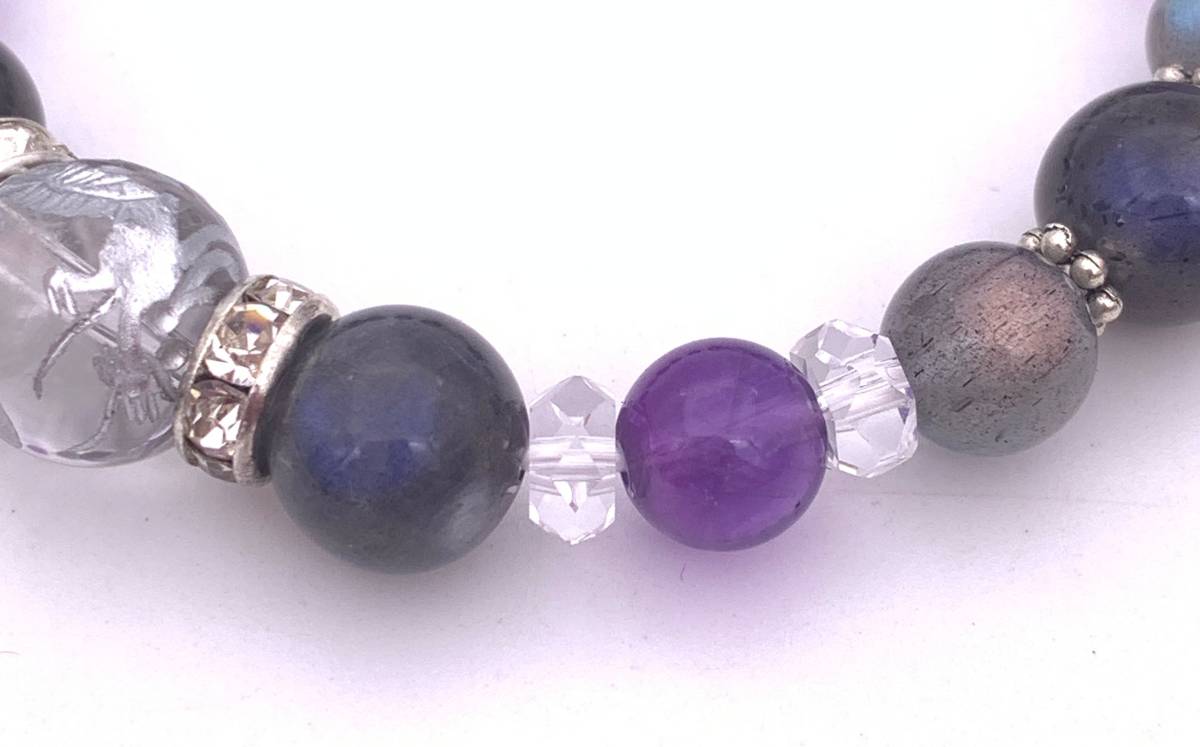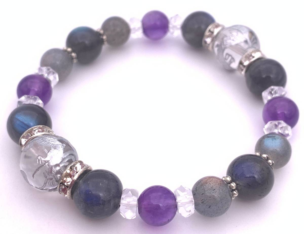 天然石水晶銀彫り青龍12mm玉&ラブラドライト&アメジストのブレスレット