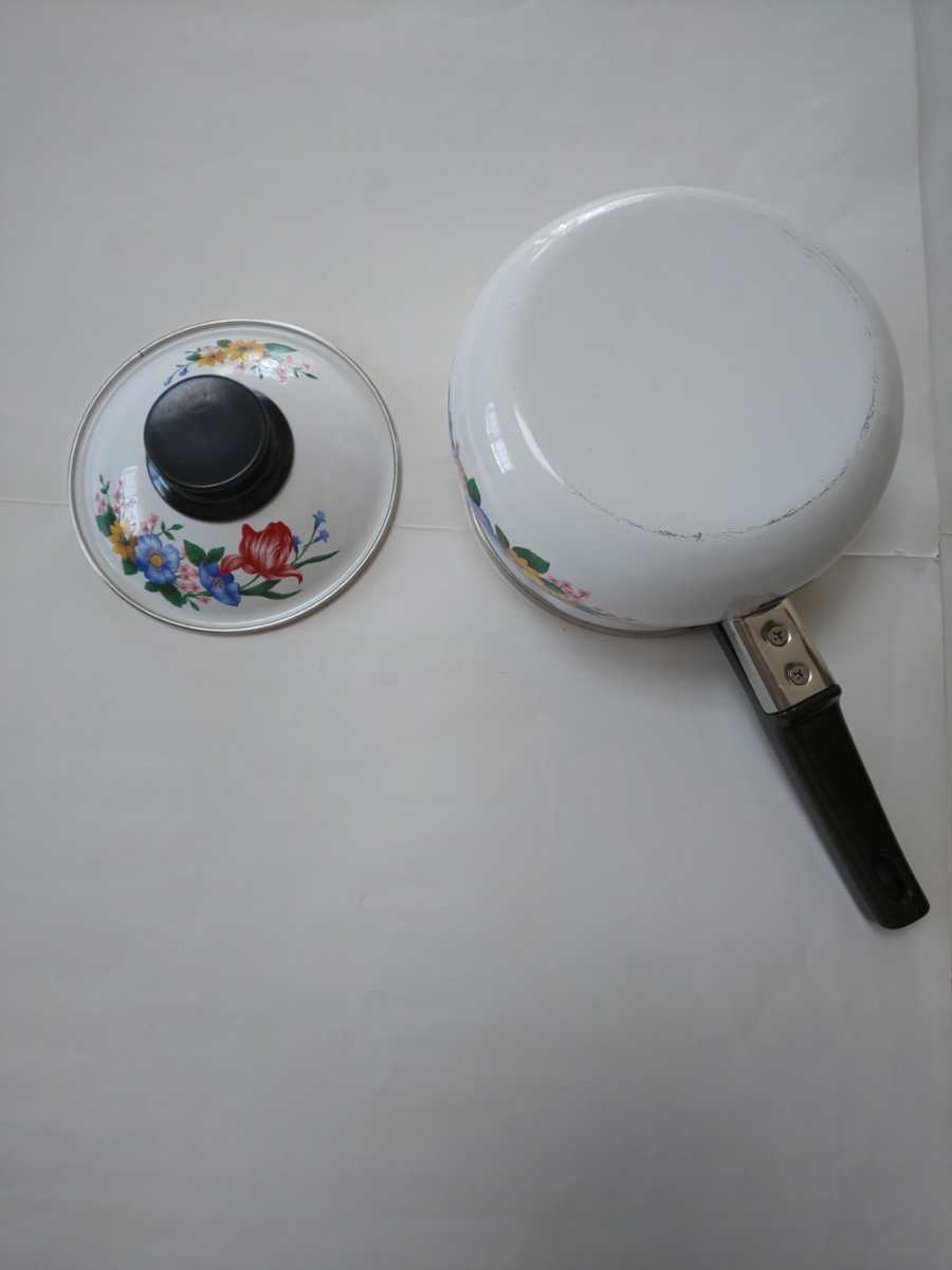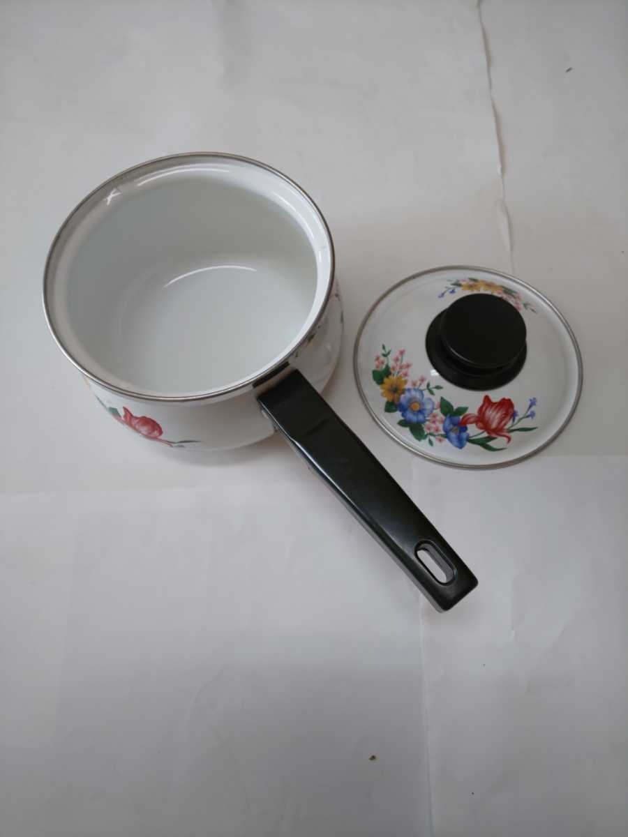 【未使用品】 ホウロウ 片手鍋 花柄  ☆ サイズ 18cm 開口部直径 17cm 高さ 10cm ☆