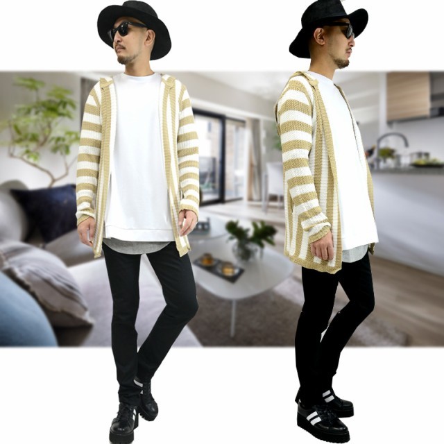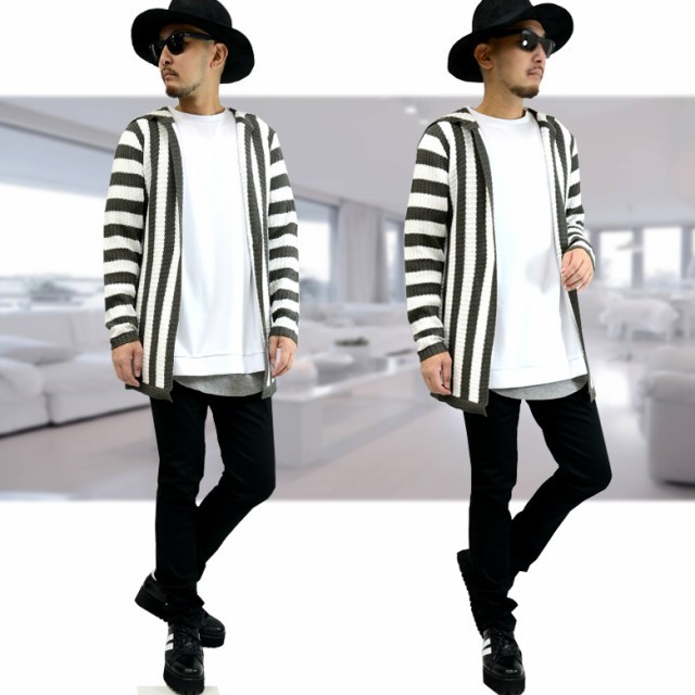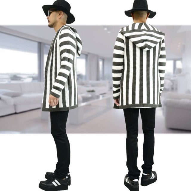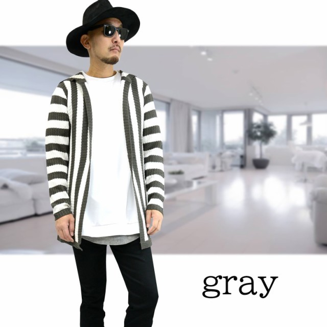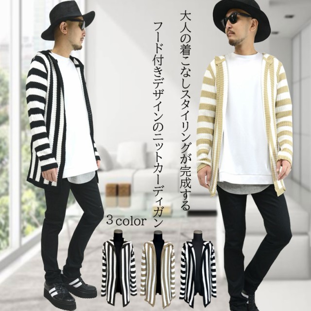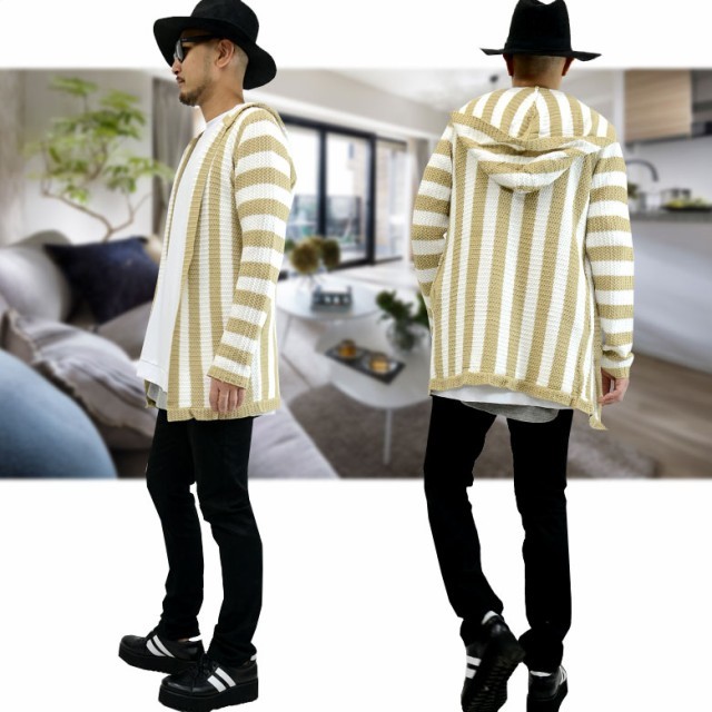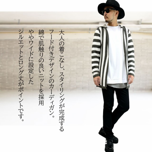 新作【 フード付きデザインのロング丈7Gストライプニットカーディガン 】の登場。