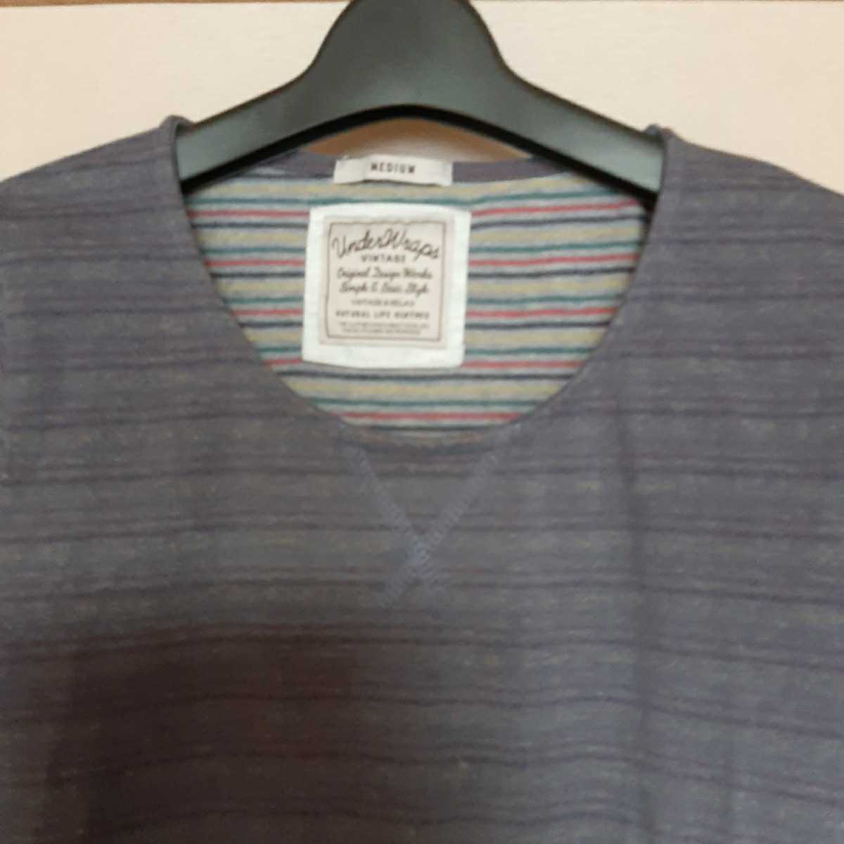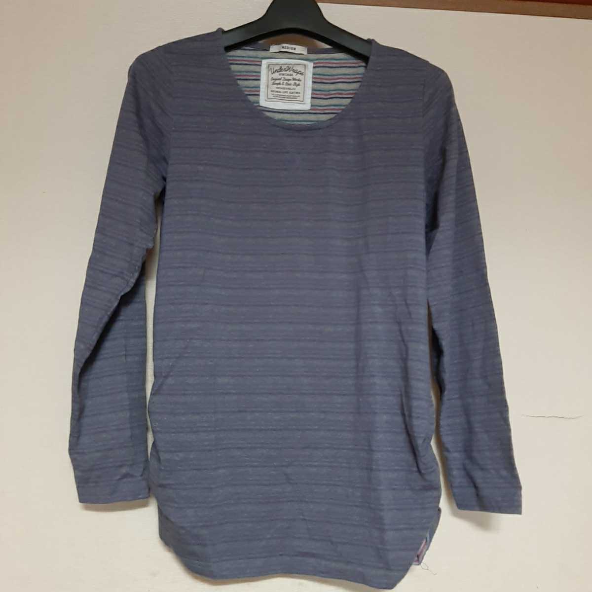 グレーにカラフル透かしボーダーの裾脇シャーリングカットソー*
