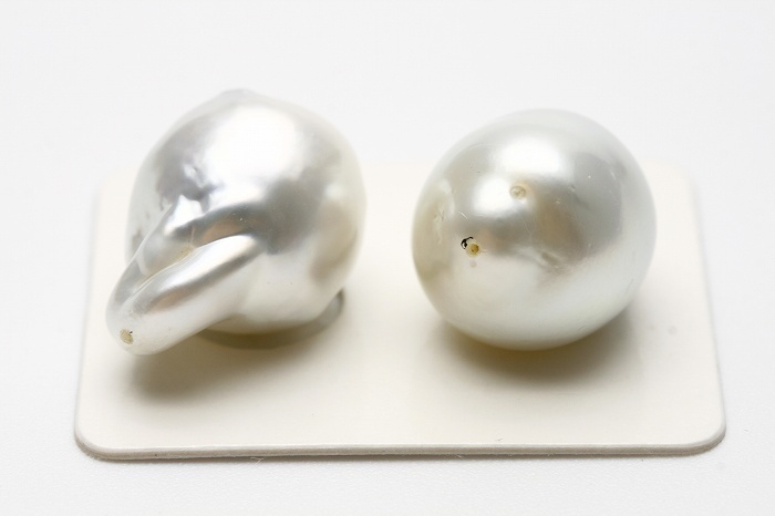 | 自然のオーラ満点の超大粒サイズの南洋白蝶真珠ペアルースです。上品なホワイトのテリを放っています。ブラタイプのイヤリング/ピアスなどにオススメです。裏面に目立つキズが見られます。※片穴空け済みです | ||
