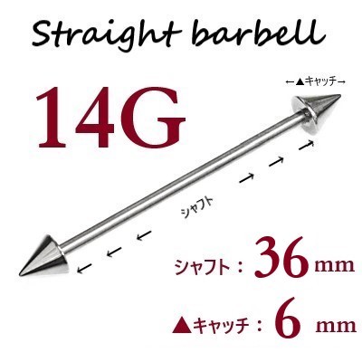 【 14G シャフト36㎜ キャッチ6㎜ 】 【1個】 ▲ コーンヘッド ストレートバーベル ピアス
