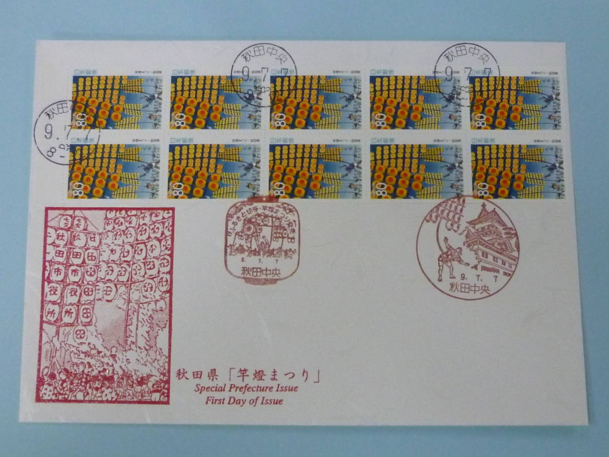 22SE P 日本切手 FDC ふるさと 1997年 地303 80円 秋田県 ペーン貼 初日印・初日特印付