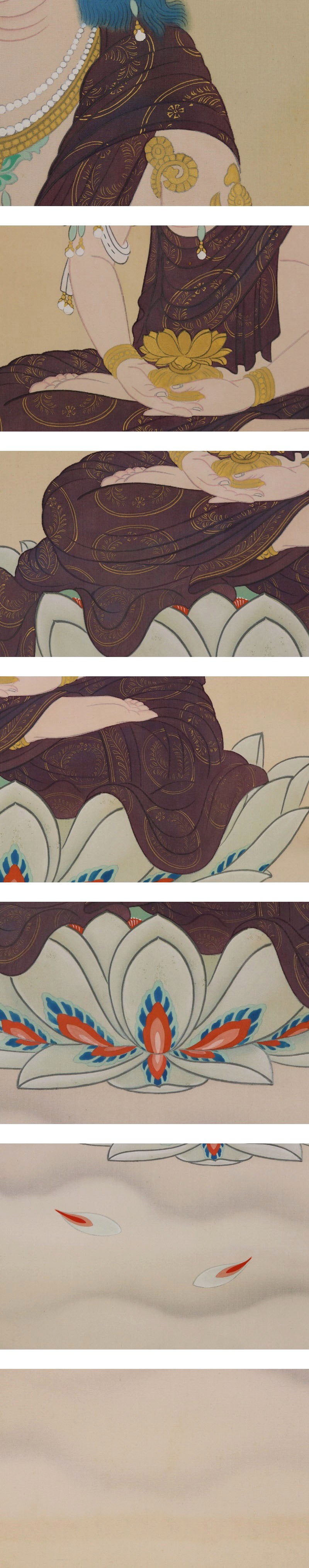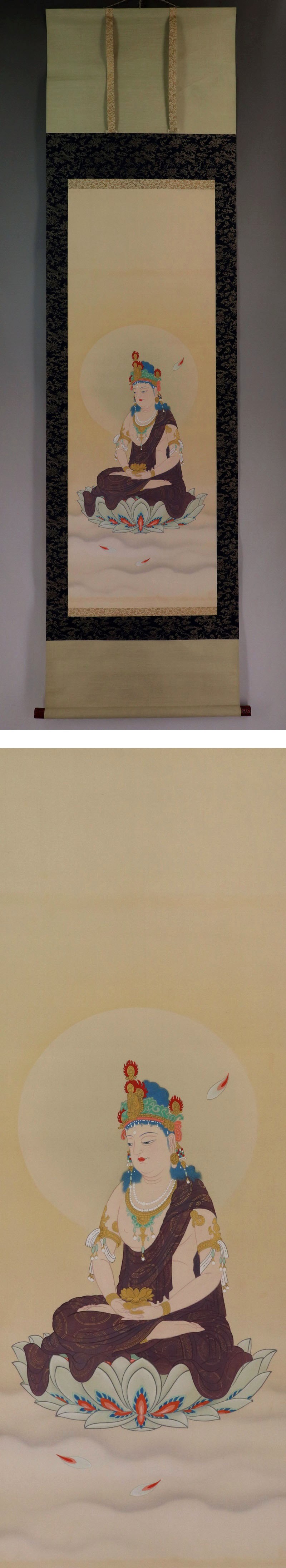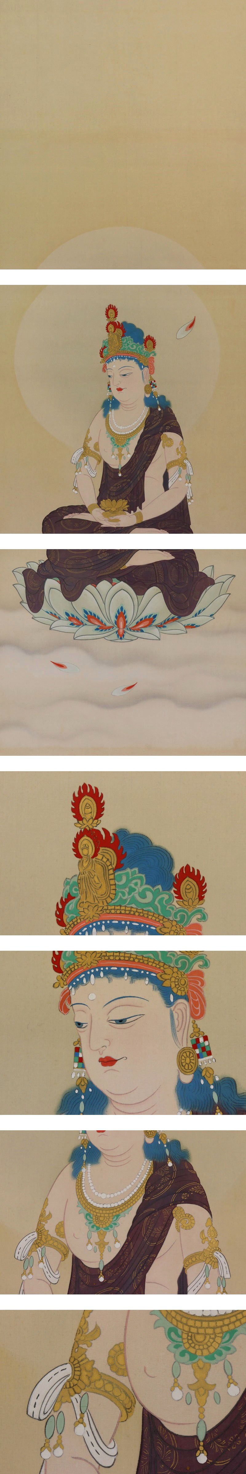 | №2112209a【肉筆】仏画【雲上観音】◆絹本◆合箱◆鎌倉彫軸先◆掛軸 | |