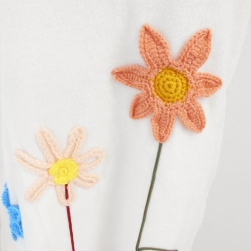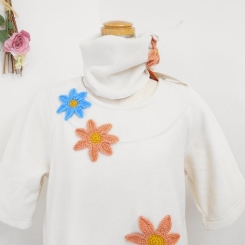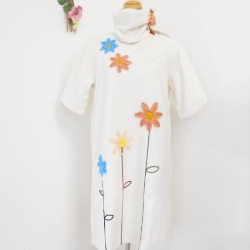 新品 タグ付き ワコール wacoal ルームウエア M お花 モチーフ フリース 暖か 半袖 重ね着 ワンピース チュニック パジャマ オフ ホワイト