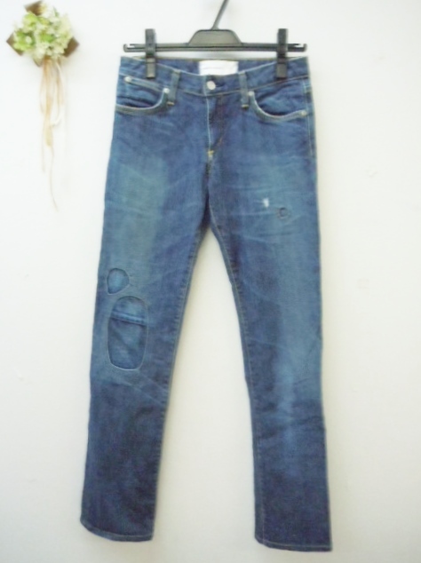 ペーパーデニム Paperdenim レディースのデニムパンツ・ジーンズです。程よいダメージ加工と、両足前のポイントが素敵なパンツです。色んな季節にぜひどうぞ。