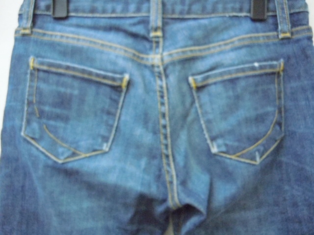 【状態】USED品です。普通に使用して、お洗濯してできる使用感はあるとお考えください。これからも十分着て頂けそうな状態です。ウエスト上部分に着用ダメージ、後ろのポケットの刺繍糸が切れている所が数ヶ所ございます。ご了承いただける方のみでお願いいたします。