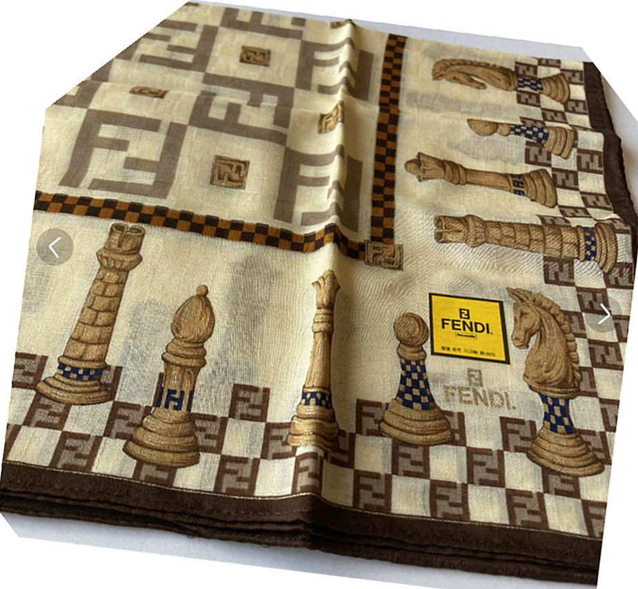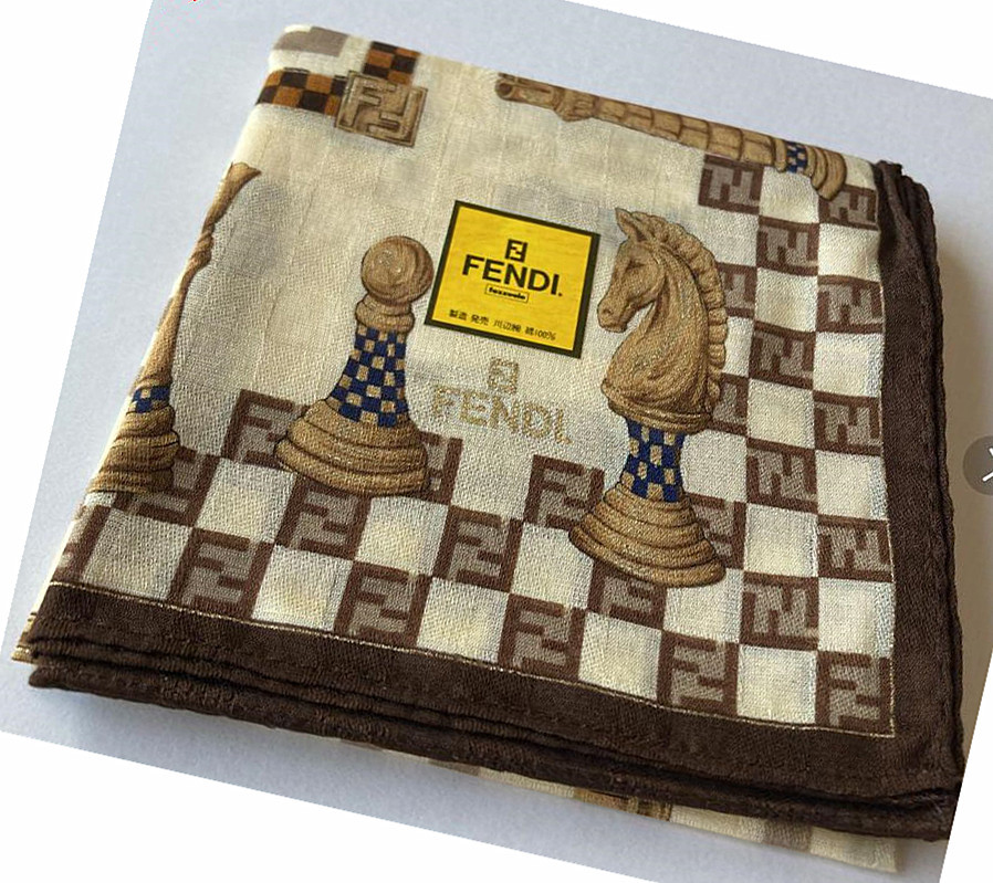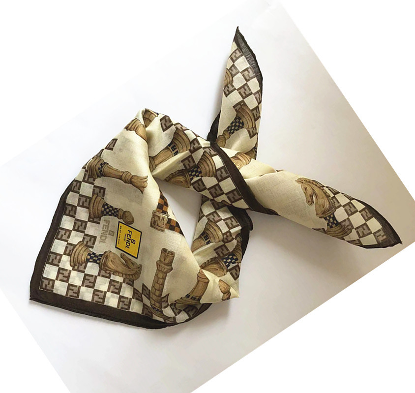 フェンディFENDI超【レア柄】◆ダブルズッカ&馬頭柄大判ハンカチミニスカーフ★膝掛け