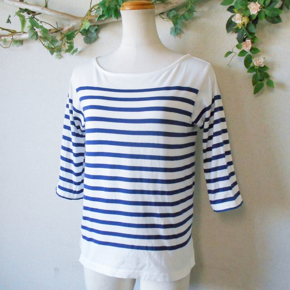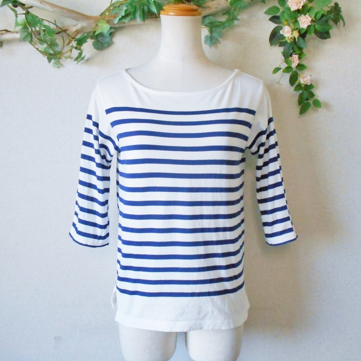 【ポイント】ピンクハウス、ペーハーブルーのレディース用カットソーになります。お色は白とブルー系のボーダーで5分袖の夏向きです。
