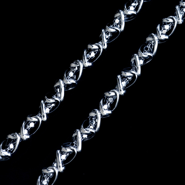 指でそっと撫でてみるがいい。滑らかでありながら、一つ一つの結節が確かな存在感を主張してくる。冷たい金属のはずが、まるで生き物のような温もりと脈動を感じさせるではないか。これは、機械が大量に吐き出した無機質な製品とは対極にある、魂の仕事だ。アペニン山脈の麓、陽光降り注ぐ工房で、名もなきマエストロが、先祖代々受け継がれてきた誇りと情熱を、槌の一振り一振りに込めたに違いない。「ITALY」の刻印は、ブランド名ではない。美の歴史を背負う者たちの、静かな宣誓なのだ。