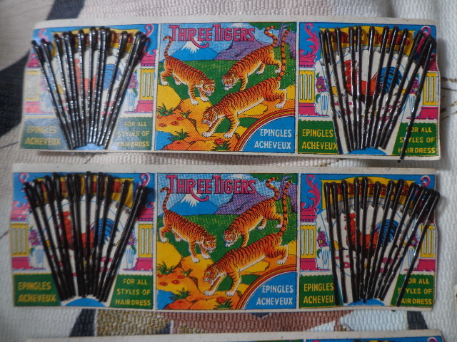 デッドストック品 ビンテージ ヘアピン アメピン セット 虎 タイガー 寅 トラ 5シートセットです。