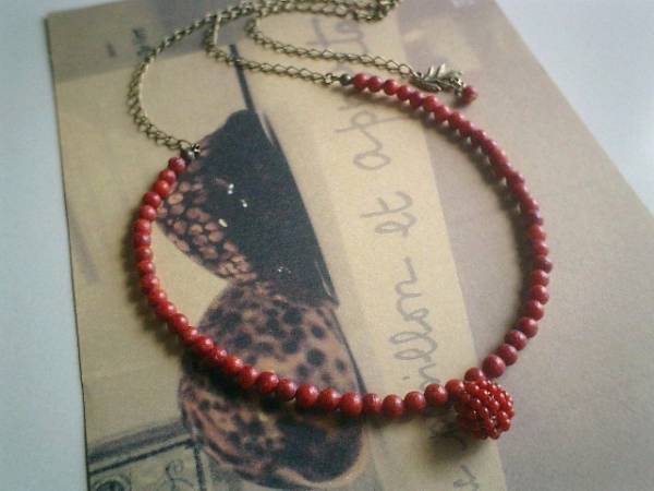 ロマンチック・セレクト・・シリーズです♪シックな深い赤の珊瑚のネックレスです♪小さな丸玉のスポンジ珊瑚に珊瑚ボールを合わせてキュートな表情です♪スポンジ珊瑚は6ミリの丸玉です♪トップの珊瑚ボールは12ミリ位です♪長さは全長70センチ位で調節自由です♪チョーカー風にされても素敵です♪お揃いのブレスレットも出品しています♪シンプルで飽きのこないいつまでも着けられるデザインを考えて作りました!ハンドメイドをご理解頂いてノークレーム、ノーリターンでお願いします