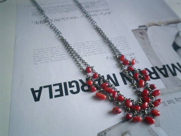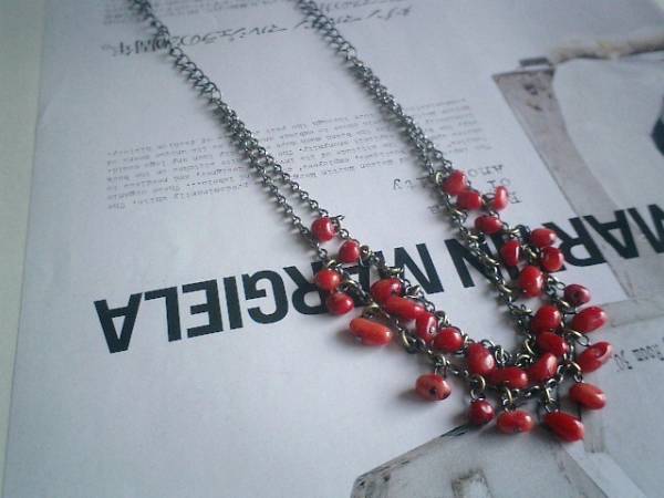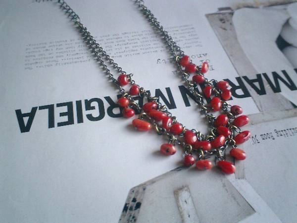 ロマンチック・セレクト・・シリーズです♪カプチーノ気分・・シックな深い赤の珊瑚のネックレスです♪珊瑚のさざれを2連のチェーンに繋いでニューヨークモダンしています♪長さは全長65センチ位で調節自由です♪チョーカー風にされても素敵です♪お揃いのネックレスやブレスレットも出品しています♪シンプルで飽きのこないいつまでも着けられるデザインを考えて作りました!ハンドメイドをご理解頂いてノークレーム、ノーリターンでお願いします