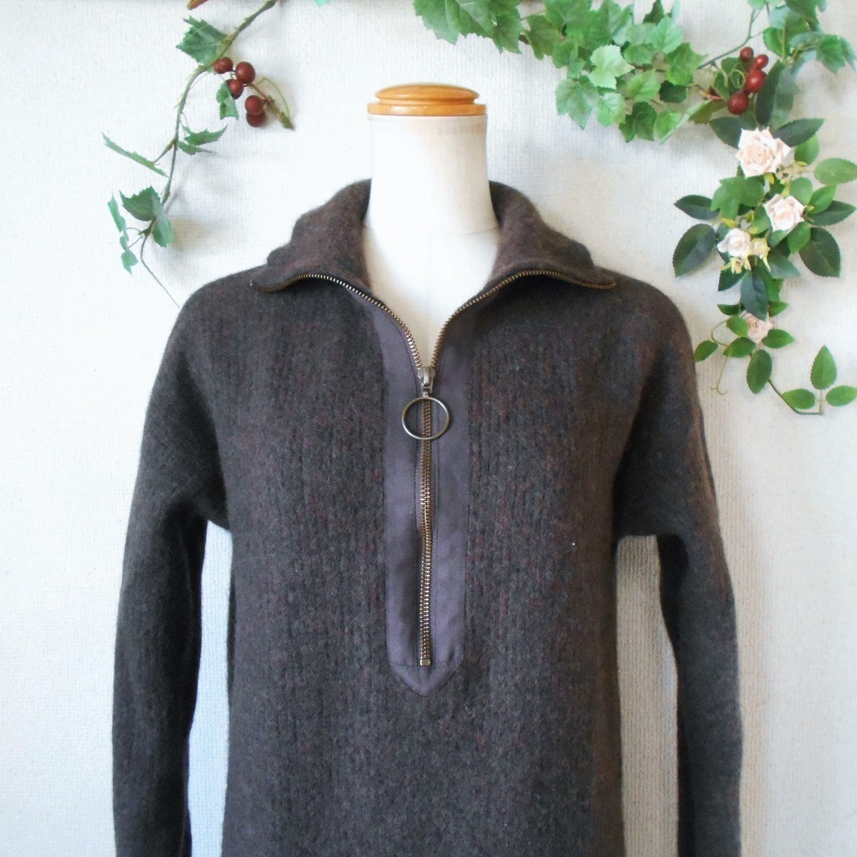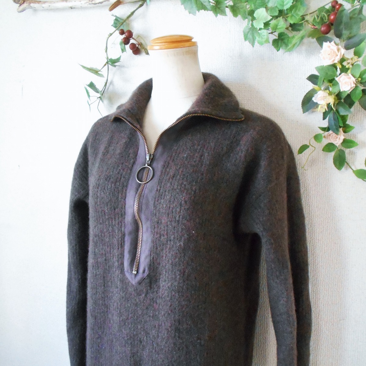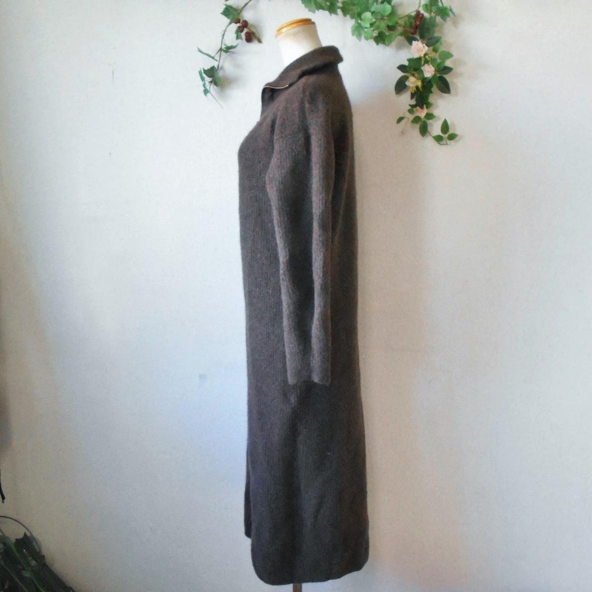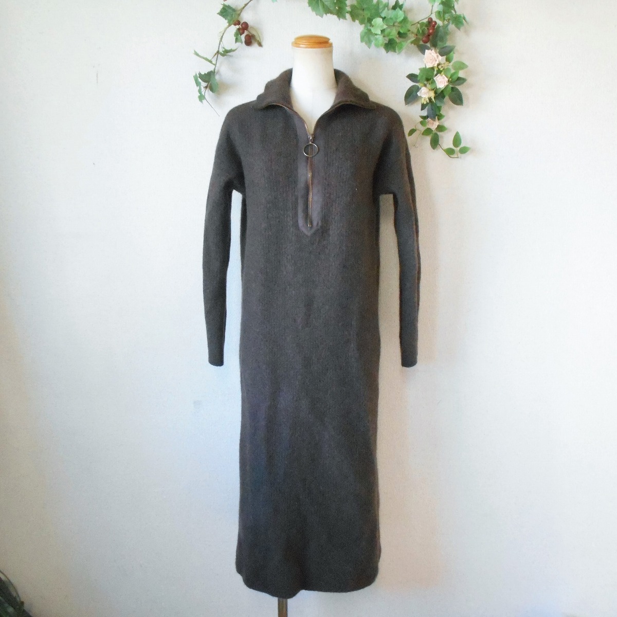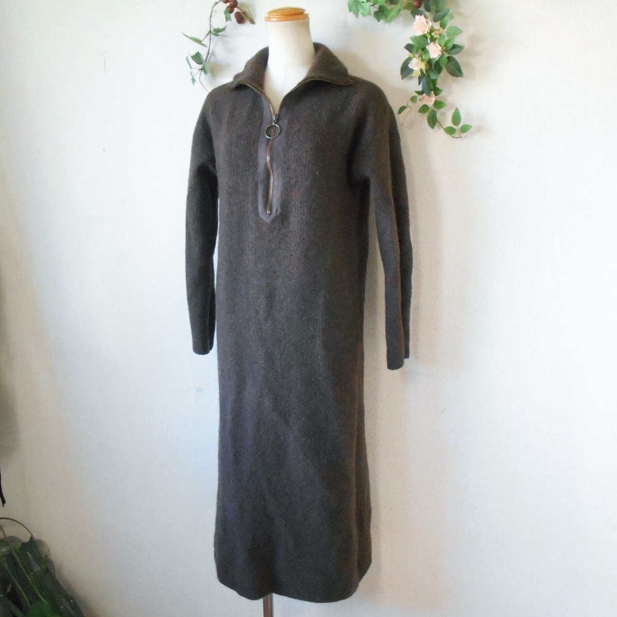 【ポイント】ミランカのワンピースになります。お色はこげ茶色で秋冬を中心に着ていただけるお品です。首元にはファスナーが付いていて、暖かそうな一着です。