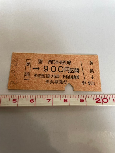 | ◎(西)西日本会社線 美浜→900円区間 美浜駅発行 B型 硬券乗車券 S.62 店番-硬券251 | |