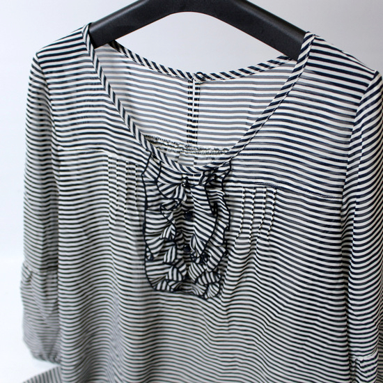 ブランド 株)ワールド After All 表記サイズ M 実 寸 (cm) 着 丈58 肩 幅35 袖 丈44 胸 周 り47 *** サイズの計り方は「サイズの計り方ガイド」をご覧ください *** 素材 ~画像の製品表記タグをご覧ください~ カラー ブラック/オフホワイト **画面上の色はブラウザや設定により、実物とは異なる場合がございます。*** 実物に近いお色をお伝え出来る様努めておりますがご了承の上ご入札頂きます様お願い致します。 商品情報 フリルとボーダー柄の可愛いシフォン 春 夏 カットソーです。 ★ こちらの商品の発送方法はネコポス(300円)、レターパックライト(370円)、クロネコヤマト宅急便(680円:北海道・沖縄1000円)です。 (アクセサリー、ハンガーは出品物では御座いません。) ランク (B) (S) 新品・未使用品 (A) 数回着用程度の超美品 (B) ダメージ無く綺麗な状態の美品 (C) 多少使用感のある一般的なUSED品 (D) 傷、汚れがあり使用感を感じるUSED品 (E) 難有。訳あり品 ※ ランクはあくまで主観によるものです。参考程度とお考えください。 ※ 新品・未使用の商品も「写真撮影」 「保管状況」などにより、小さな傷、かすかな汚れ、毛玉、シワがある場合がございます。お安く出品しておりますので、ご理解の上入札をお願い致します。