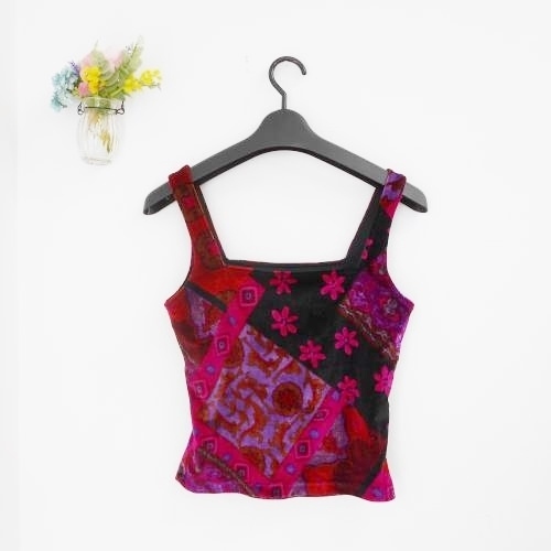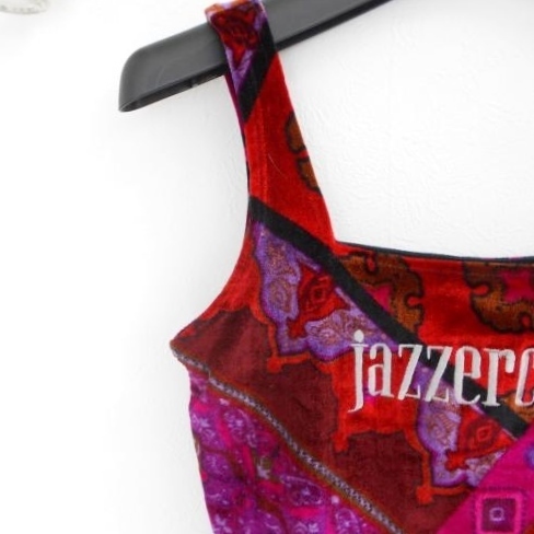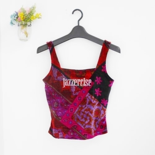jazzercise ジャザサイズ レディース S 小さめ 秋冬向き 綺麗な お色の ベスト ベロア 赤 ピンク パープル 柄 トップス