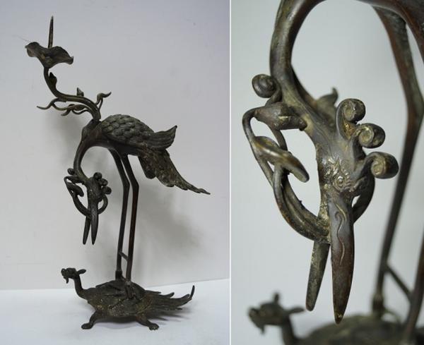 素材:金属。重さ902g。高さ約34cm。その他古いもので、経年の擦れ、汚れ、傷等ございます。状態は写真をご参照頂けますようどうぞよろしくお願いいたします。