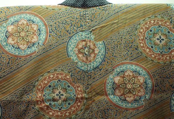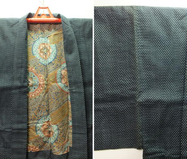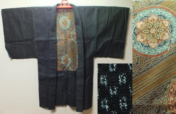 素材:木綿。着丈108.5cm、裄68.5cm、袖幅34cm、袖丈54cm、後幅31cm。裏地の生地取りだけでも価値があるかと思います。両脇や背中心や折り目にヤケがあります。状態は写真をご参照頂けますようどうぞよろしくお願いいたします。 【撮影時の照明の加減で実物の色よりも青白く写っている場合があります。】
