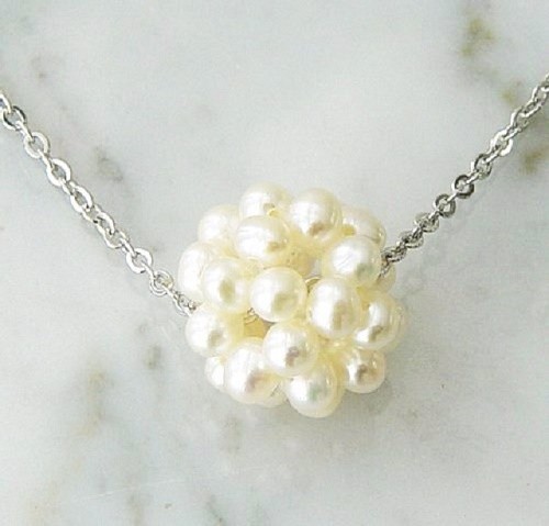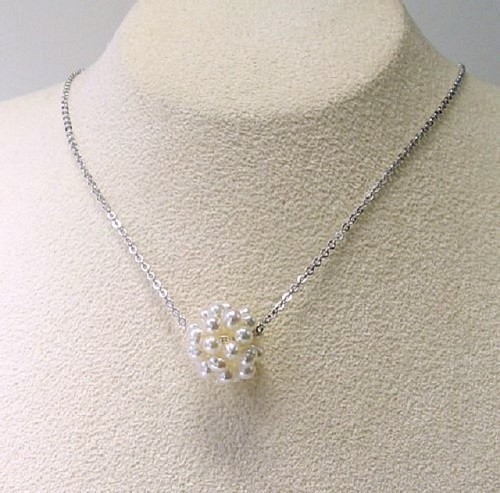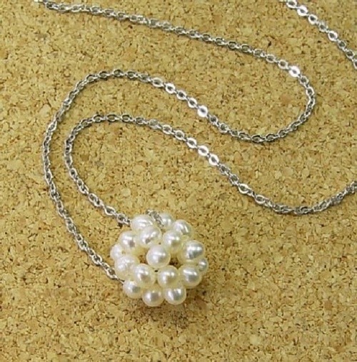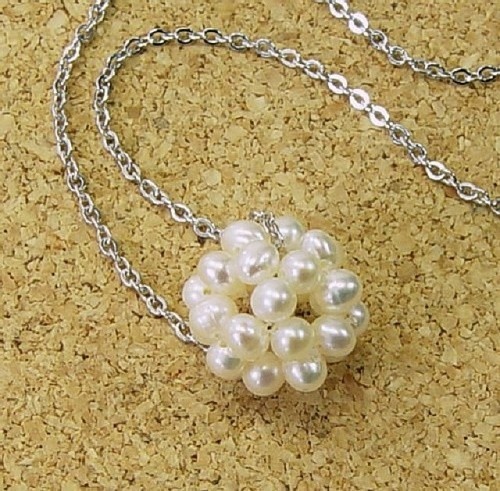 ◆30粒のベビーパールをブーケのようなボール型に組んだペンダント。