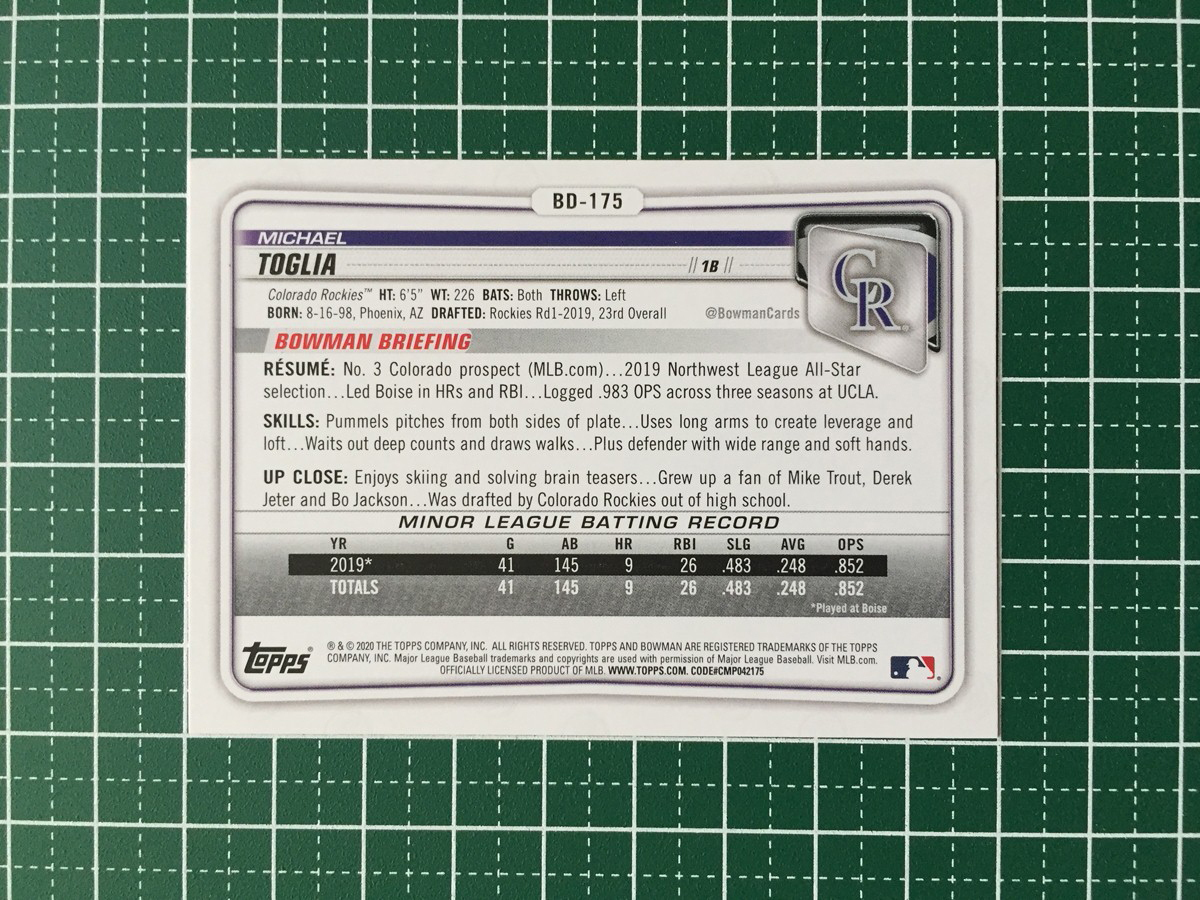 ★TOPPS MLB 2020 BOWMAN DRAFT #BD-175 MICHAEL TOGLIA[COLORADO ROCKIES]ベースカード★