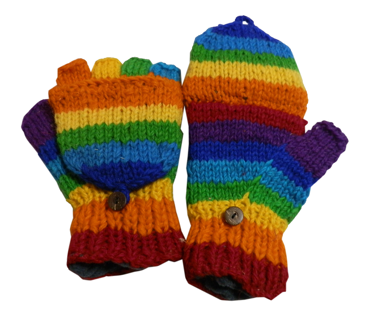 ■☆アジアン衣料 ネパール手編みカバー付き指なし手袋(フリース付)(NSG-9)