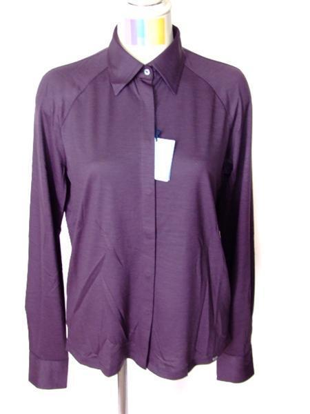 レディース長袖ブラウス ラグラン袖 隠しボタン パープル サイズ:44